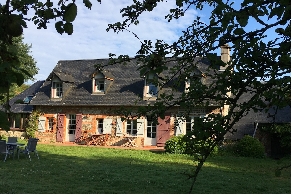 Dieses Haus ist das älteste in unserem hübschen Dorf. Typisch normannisch, 9 km von Etretat, 27 km von Le Havre oder 37 km von Honfleur entfernt. Seine 100 m2 Wohnfläche bieten Platz für 5 Personen + 1 Baby und die 300 m2 großen Gärten mit Bäumen und Blumen sind ideal für Ihre besten Grillabende! Wir lieben die Seele dieser alten Dame, ihren Kamin, ihre "schiefen" Seiten im 1. Stock und ihre Holzbalken Das Dorf hat 2 Bäckereien, 1 Metzger, 2 Supermärkte, 1 Apotheke, 3 Restaurants (1 klassisch, 1 Pizzeria und 1 Kebab)..