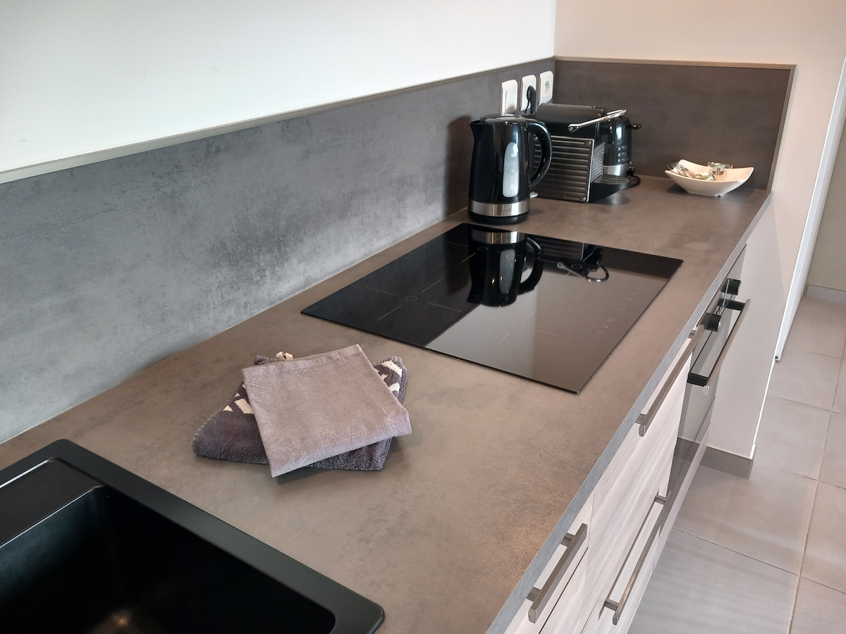 Eigene Unterkunft für 2 Personen auf einer Ebene mit eigenem Bad, Bettbreite 160. Angrenzende Küche mit Mikrowelle, Senseo-Kaffeemaschine, Kühlschrank, Kochplatte, Geschirr und Waschmaschine. Die Waschmaschine wird auch von der Familie benutzt. Die Küche ist nur für Gäste. Zu Ihrer Verfügung der Garten, Rasen, Pool, ohne Gegenüber, ruhig, in der Natur, mit Blick auf den Berg Sainte Victoire.