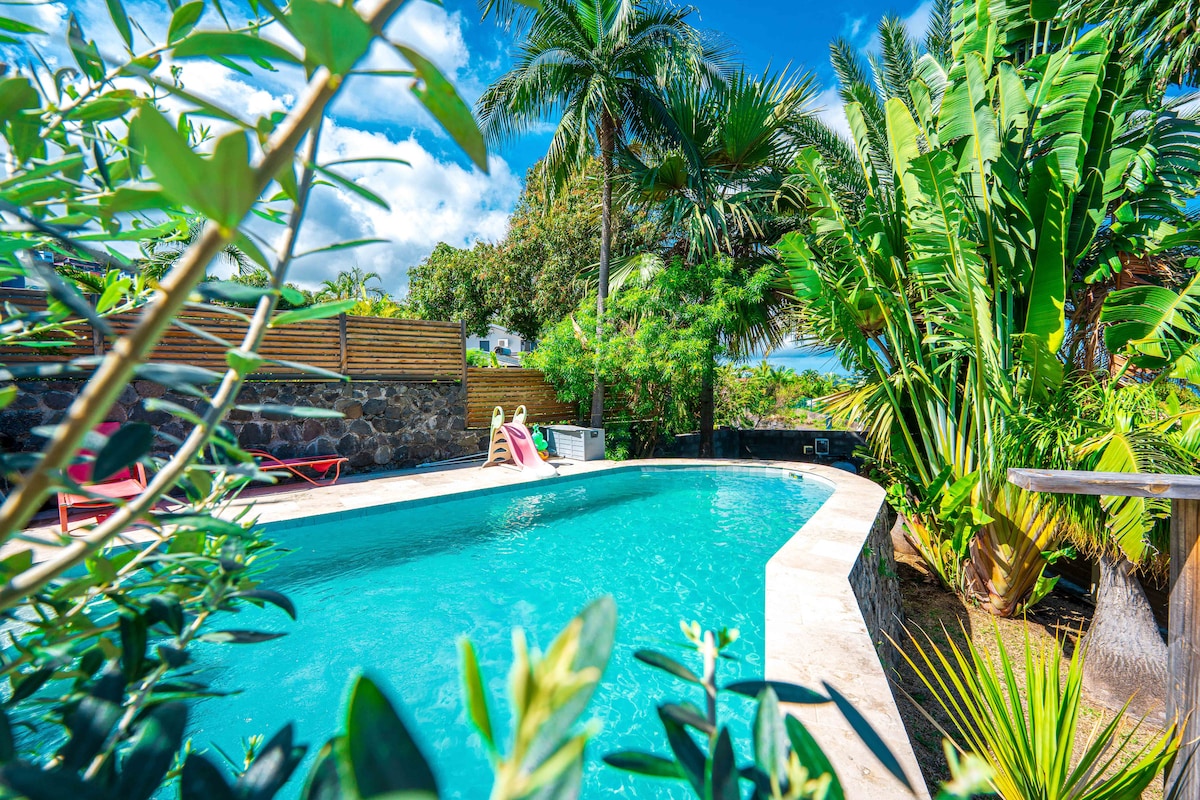 Genießen Sie den Charme eines kreolischen Hauses mit 3 Schlafzimmern, einem tropischen Garten und einem Pool. Auf 400 m Höhe gelegen, genießt es ein angenehmes Klima, geschützt vor der großen Hitze der Küste, und ermöglicht es Ihnen, in 30 Minuten zum Strand und auf mehreren Wanderwegen in 15 Minuten zu gelangen: Roche Verre Bouteille, 4x4-Strecke des Kiesflusses, um Mafate zu betreten.