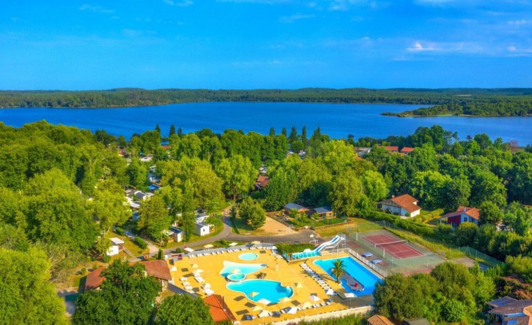 MOBIL-HOME climatisé de 40 m² pouvant accueillir 6 personnes : 3 chambres (1 avec lit 160 cm et 2 avec 2 lits chacune). Cuisine entièrement équipée : plaque de cuisson 4 feux gaz, micro-ondes, réfrigérateur-congélateur, cafetière, grille-pain, vaisselle complète… Barbecue. Salon : TV écran plat, table de salle à manger pour 6 personnes… 2 salles d’eau : douches, lavabos, 2 WC. Terrasse de 20 m² avec salon de jardin, transats, jardin privatif de 220 m²… Camping situé au bord d’un lac