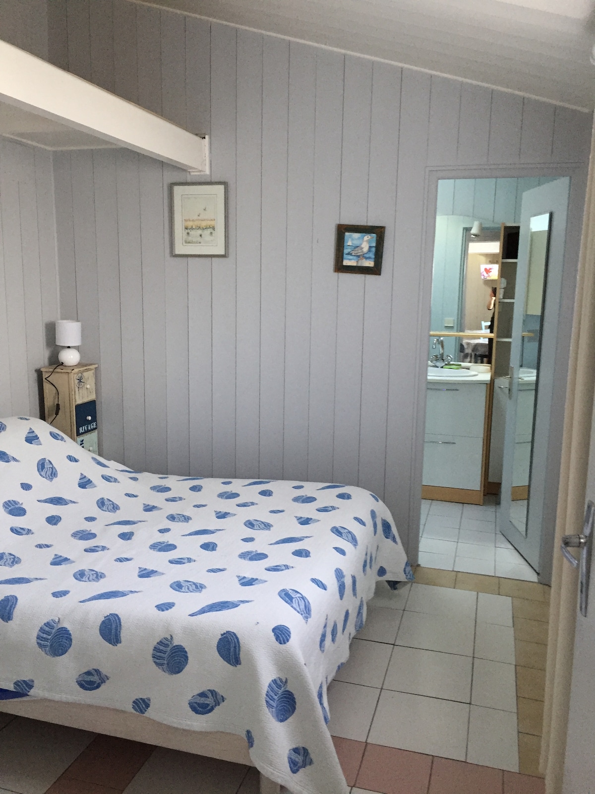 Charmantes Gästezimmer (24 m2) auf der Ile de Ré. Schön eingerichtetes Zimmer mit Doppelbett (1,60 m) und großen Stauraum. Geräumiges Bad mit italienischer Dusche. In der Nähe: Fahrradverleih, Radwege, Meer, Tennis, Reiten, Segeln und Ultraleichtflugzeuge. Schöne Terrasse/TV/WLAN/Rauchmelder