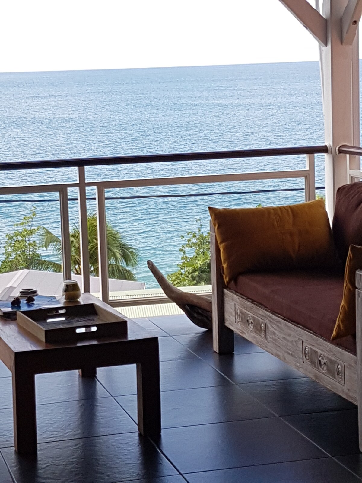 Maison , vue 180° sur mer des Caraïbes. Plage a 50 mètres. Cuisine toute équipée (plaque, micro-ondes, lave vaisselle, lave linge etc...), air conditionné dans les chambres, grande véranda de 50m2. Bar ouvert sur véranda. Deck avec solarium et barbecue. Chambres spacieuses avec rangements. 2 salles de bains, 2 WC. Salon et espace repas sur véranda. Wifi gratuit (fibre) Proximité route passante occasionnant en journée du bruit de voitures . Cet inconvénient disparaissant le soir et la nuit.