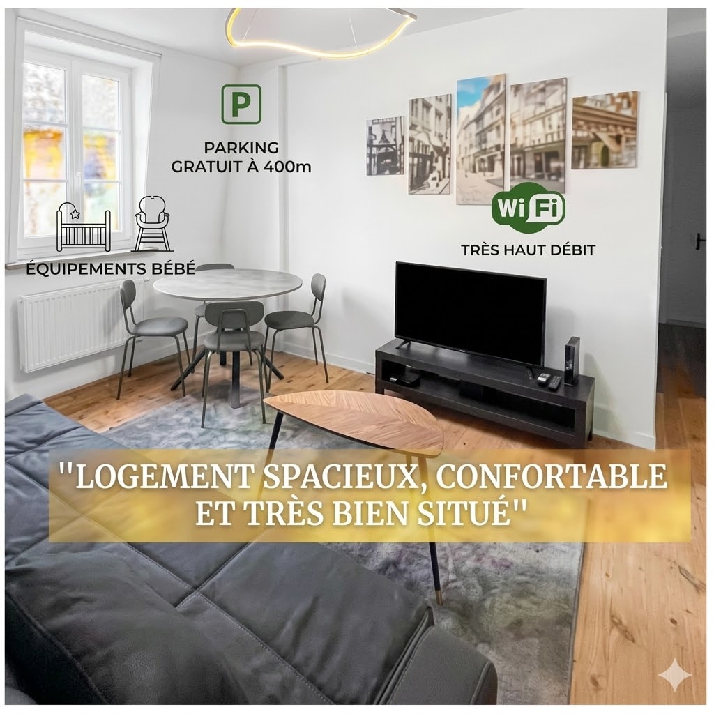 Comfortable apartment ideally located in the city center, in a quiet and secure residence. Bed linen and towels are provided. Self check-in available to suit your arrival time. Free street parking is available (limited spaces depending on the time of day). A private garage located just behind the apartment is available for €5 per night, convenient for unloading and loading your belongings (advance reservation required). Cleaning option available: €30 cleaning fee.