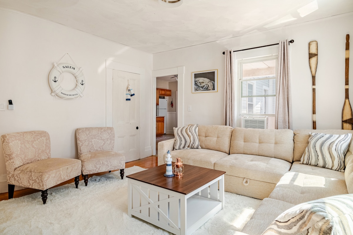 Genieße ein stilvolles Erlebnis in dieser zentral gelegenen Unterkunft. Einfacher Zugang zur Innenstadt von Beverly, Salem, lokalen Stränden und zur S-Bahn nach Boston. Die Wohnung verfügt über ein voll möbliertes Wohnzimmer, ein Schlafzimmer und eine Küche sowie zusätzliche Annehmlichkeiten wie Klimaanlage, Waschmaschine, Kabel, eine vordere und hintere Veranda sowie einen Außenkamin und eine Terrasse. Nur wenige Gehminuten von allem entfernt, was die Innenstadt von Beverly zu bieten hat. Eine Zughaltestelle oder 5 Fahrminuten von der Innenstadt von Salem entfernt.