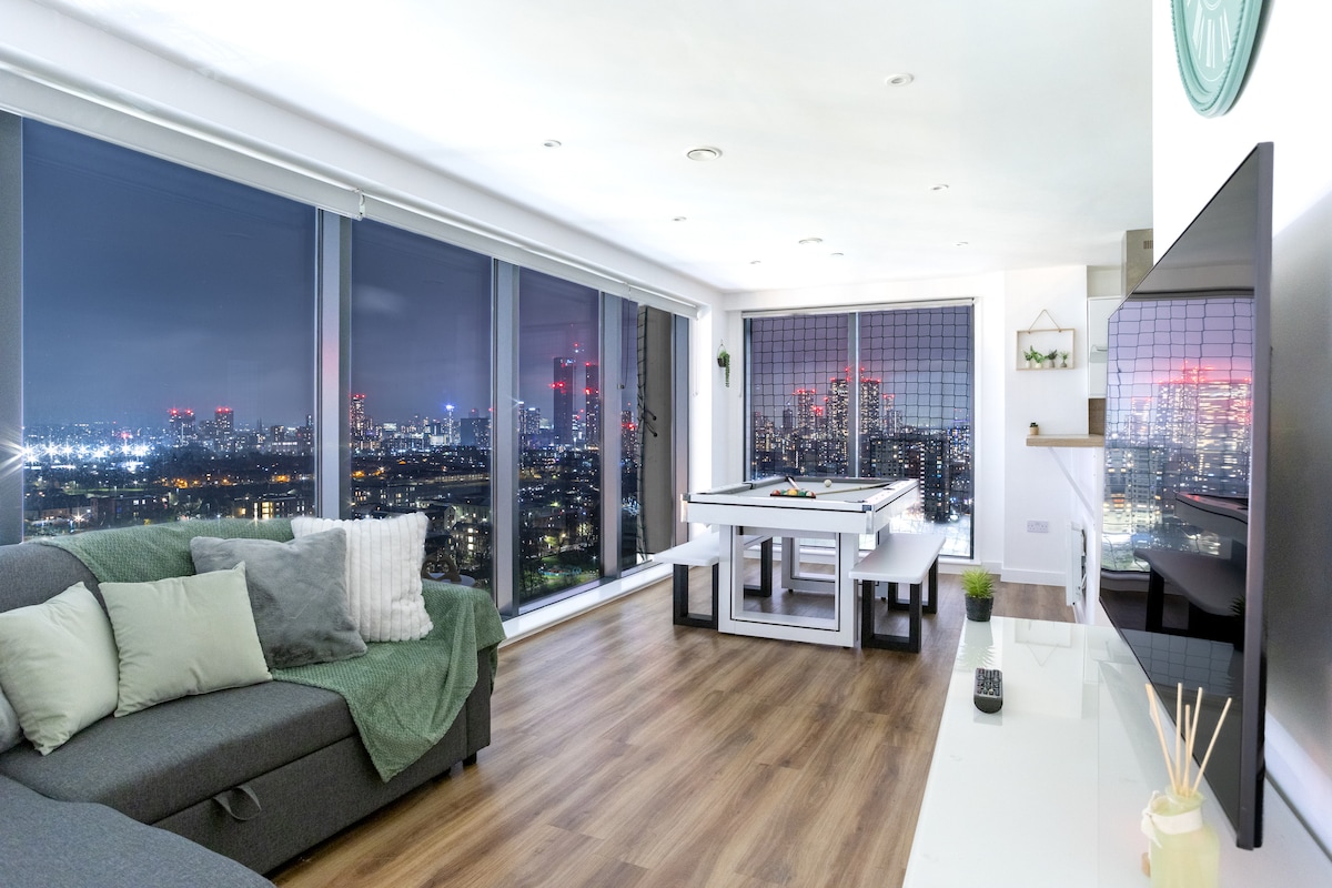 Modern flat ideally located between Manchester city centre and Salford Quays, offering breathtaking skyline and waterfront views. Bright, open-plan living space with large windows, stylish finishes, and excellent transport links. Perfect for professionals seeking comfort, convenience, and stunning scenery in a prime location.