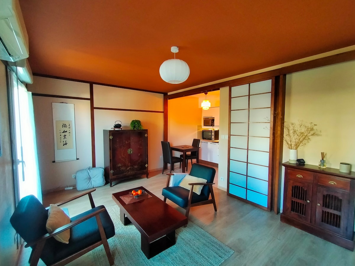 deux pièces, parking privé gratuit, clim Wifi