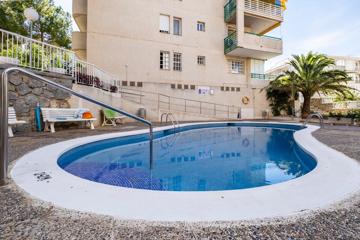 Apart. piscina, terraza, parking y a 4 min playa.