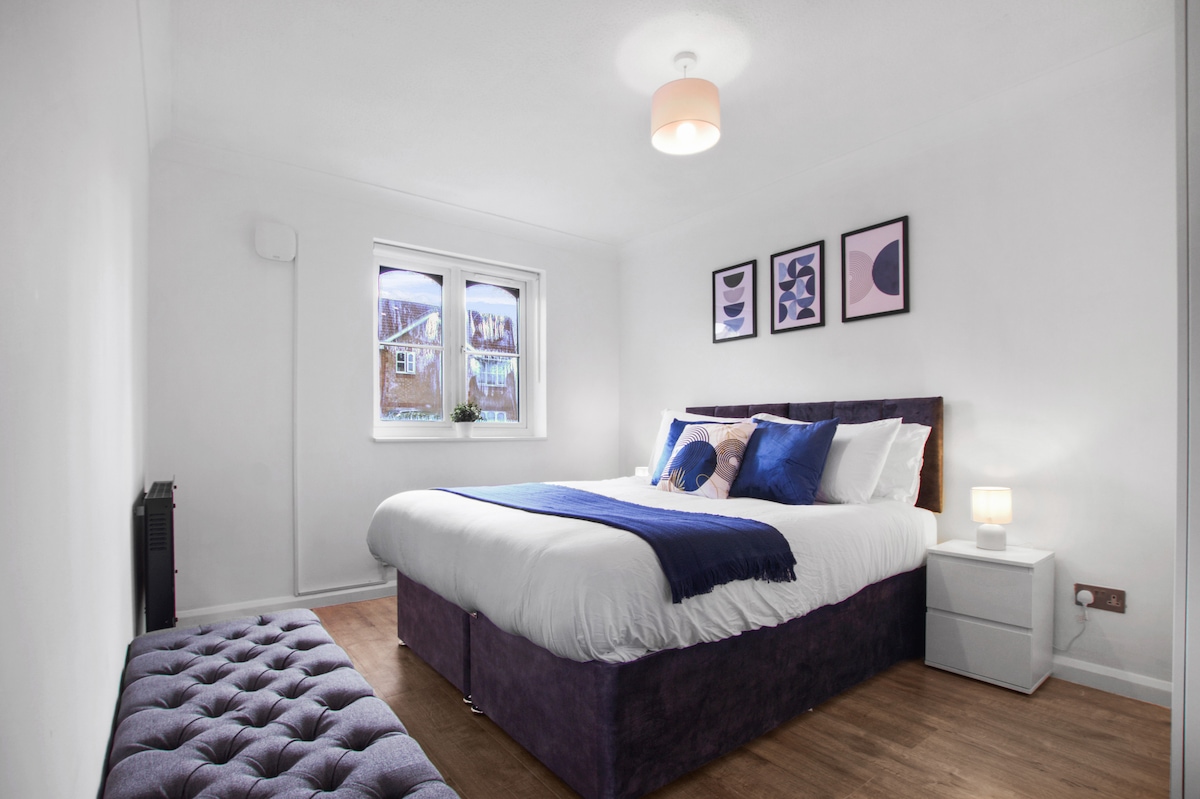 Erlebe Komfort und Bequemlichkeit mit einem Aufenthalt in unserer neu renovierten Einzimmerwohnung im pulsierenden Herzen von Slough. Ideal für Freizeitreisende und Berufstätige gleichermaßen. Du kannst einen 50-Zoll-Smart-TV, superschnelles Internet, eine voll ausgestattete Küche, kostenlose Pflegeprodukte, ein bequemes Bett und eine Schlafcouch für Gäste oder Kleinkinder genießen. Bleibe sicher in unserem Gebäude und genieße gleichzeitig eine erstklassige Lage, nur wenige Minuten vom Bahnhof Slough, Windsor Castle, Legoland und Geschäftszentren entfernt.