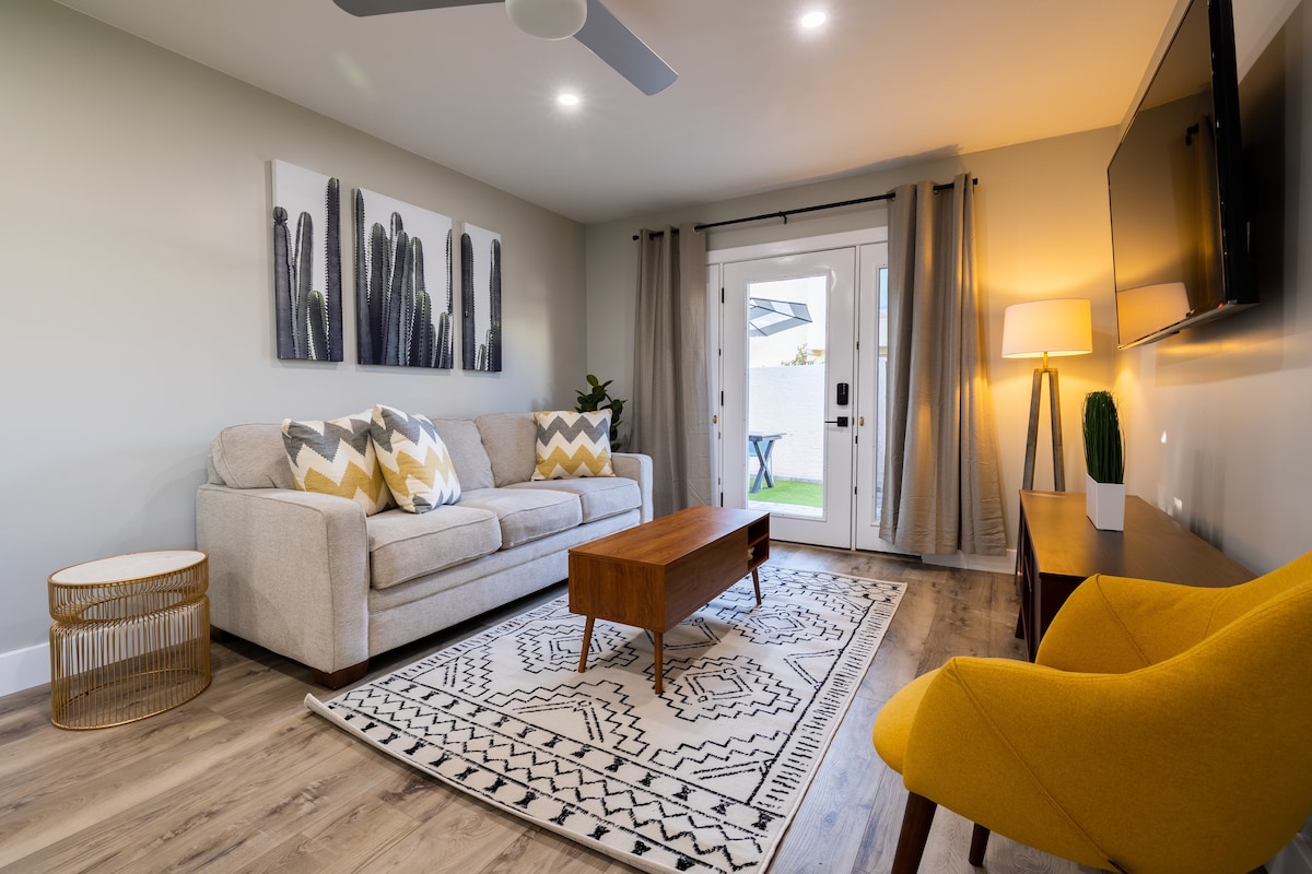 Entdecke Scottsdales verborgenes Juwel – „Bella Casita“, deine private geschlossene Oase wartet auf dich! Entfliehe dem Luxus in unserer atemberaubenden Casita mit 1 Schlafzimmer und privater Garage, eingebettet im Herzen von Scottsdales schönstem Viertel! Perfekt gelegen, nur 6 Meilen von TPG, Westworld, Barrett Jackson, Old Town, Mayo Clinic und gehobenen Einkaufsmöglichkeiten entfernt, verspricht dein Aufenthalt eine gute Anbindung an die begehrtesten Sehenswürdigkeiten von Scottsdale. Tritt ein in dein eigenes Stück vom Paradies, direkt im Zentrum von 101 & Shea. STR # 2032734 Rauchen verboten