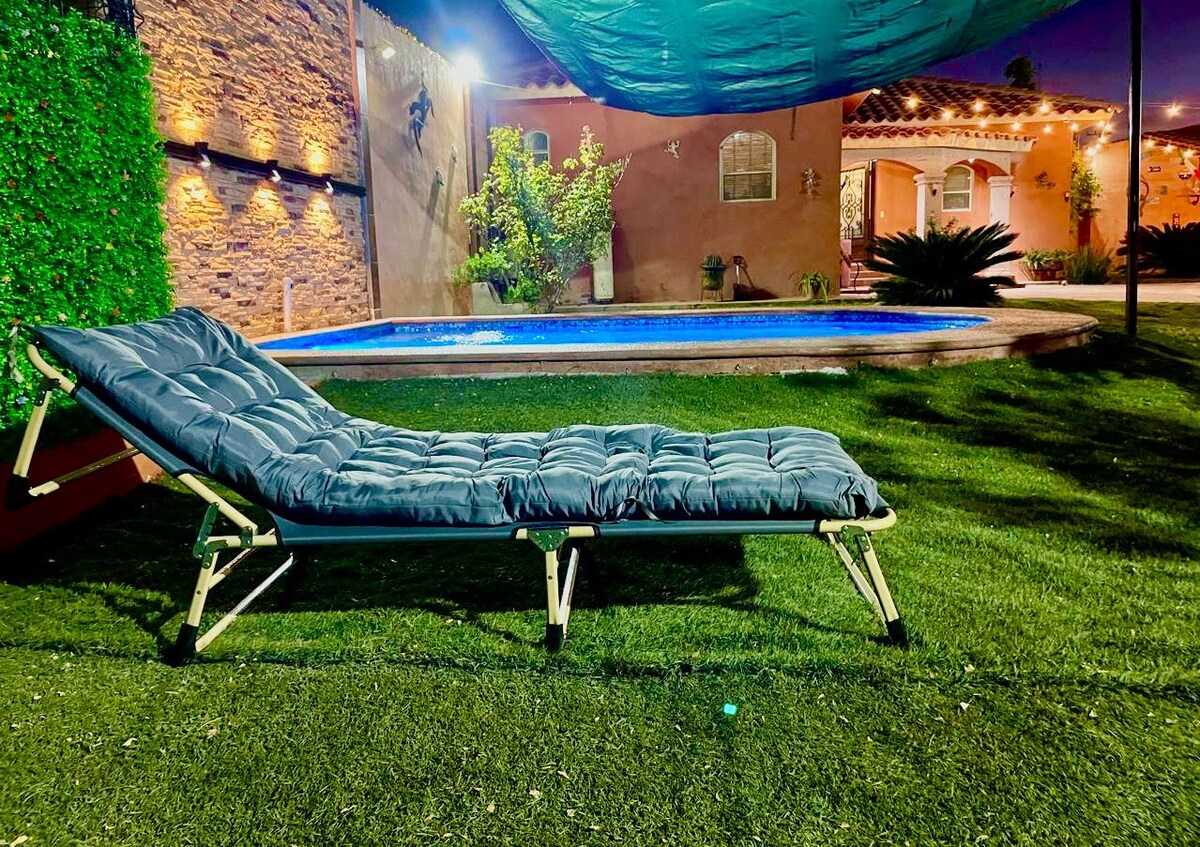 Relájate con la familia o amigos en este alojamiento cómodo y agradable. Cuenta con todo lo necesario para hacer tu estadía inolvidable. Ubicada muy cerca de avenidas principales y centros comerciales, en una zona muy segura y tranquila. Cuenta con cochera techada y patio para hacer carnes asadas. Dos habitaciones amplias con camas matrimonial y king size y un sofá cama, pantallas con Netflix activado en cada habitación y en la sala. Cocina equipada, sala, comedor y baño completo.