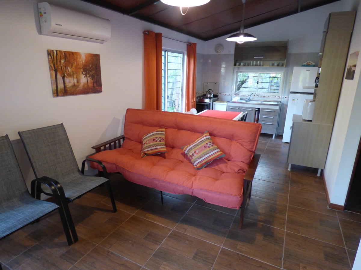 62 m² großes Haus im ruhigen Jardines-Viertel, Termas del Daymán. Ideal zum Entspannen, verfügt es über ein Wohn-Esszimmer, eine Küchenzeile und ein Einzelbett mit einem Matrosen. Es verfügt über Kabel-TV, WLAN und ein anpassungsfähiges Schlafzimmer mit zwei Einzel-Sommier-Betten oder einem Queensize-Bett. Überdachter Grillero, Kaltwasserpool, Spielplatz für Kinder und Fußballbogen. Unabhängiger Eingang für Fahrzeuge. Der Swimmingpool ist vom 1. November bis zum 15. April aktiviert. Es wird gelegentlich mit einer anderen Immobilie geteilt, die ich auf dem Grundstück habe.