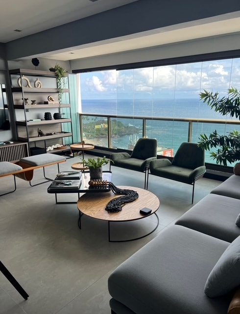 Unsere Wohnung ist durchdacht gestaltet, um den Gästen einen warmen, einladenden und unverwechselbaren Aufenthalt zu bieten. Es bietet einen voll ausgestatteten Raum mit freiem Meerblick und direktem Zugang zum Strand. Das Gebäude verfügt über einen Pool mit Meerblick, einen Fitnessraum und eine gemeinsame Arbeitslounge. Es liegt am Meer mit privatem Zugang zum Pedra Alta Beach bei Ebbe, nur wenige Gehminuten von berühmten Sehenswürdigkeiten wie dem Leuchtturm von Barra, Shopping Barra, Porto da Barra Beach und seinen lebhaften Bars und Restaurants entfernt.