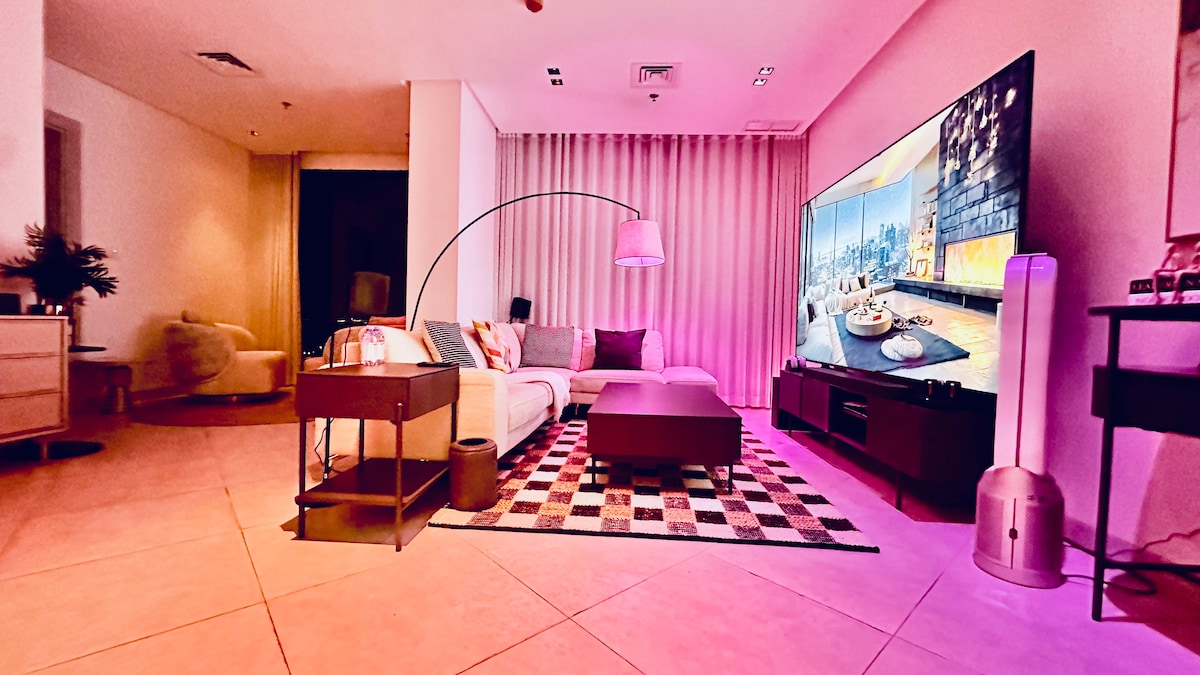 💎Selbst-Check-in voll möblierte Wohnung in Salmiya 💎5G Ultra-Speed-WLAN 💎Philips Hue Farblicht mit mobiler App 💎Eigenständiger Check-in mit elektronischem Schloss 💎55-Zoll-Smart-TV/Bluetooth-Soundbar 💎50-Zoll-Fernseher im Schlafzimmer 💎Netflix, OSN, Prime, ZeeTV, SDisney 💎Toilettenartikel und Badetücher werden bereitgestellt 💎Kabellose mobile Ladegeräte 💎Dr. Vranjes Luxus-Öldiffusor