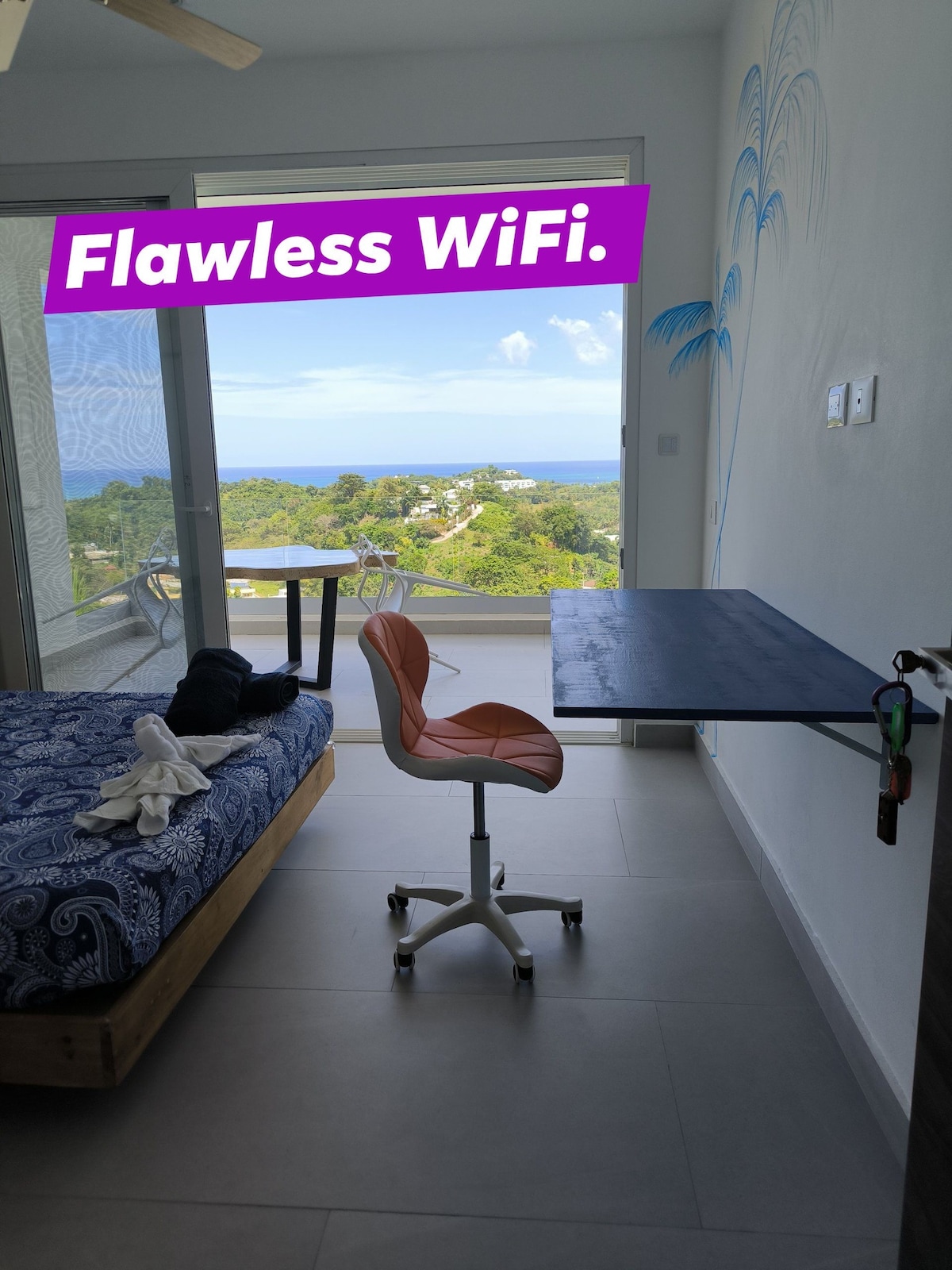 Our two floor Penthouse is equipped with central AC, memory foam king-size bed, two full bathrooms, fully equipped kitchen, full-size refrigerator, dishwasher smart tv's, Bluetooth speakers, queen-size sleeper sofa, toodler cot, arcade, dining table & chairs and more. Our 1st floor has breathtaking views of Samaná Bay, Caylo Levantando & Los Haitisis. Enjoy our balcony outdoor seating, smart tv, oversized games, domino table and electric grill. Book today to enjoy an unforgettable experience!