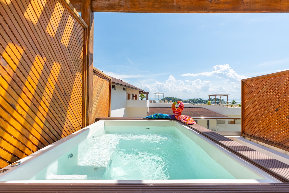 A stunning bayfront hideaway created for couples in search of a romantic escape. This elegant, luxury apartment offers a spacious bedroom, a fully equipped kitchen, and high-end modern comforts. Spot whales from your private terrace (Jan–Mar), relax in the infinity pool, or jog along The Malecón. Every detail is designed to deliver privacy, relaxation, and an unforgettable stay in paradise.