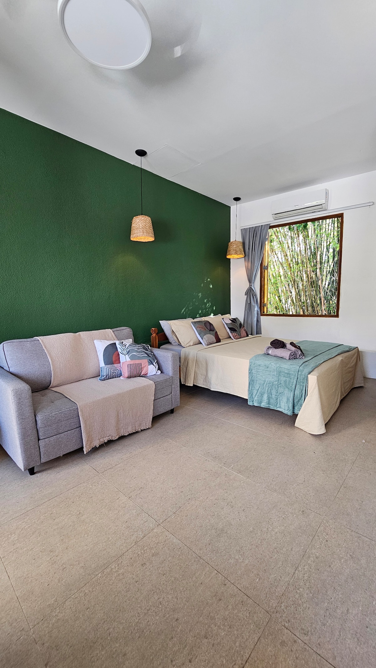 Voll ausgestatteter gemütlicher und weitläufiger Bungalow, kleine Küche und herrliche Aussicht, in einem privaten Garten mit separatem Eingang. Unser koloniales Anwesen ist von einem tropischen Garten umgeben und befindet sich in einer idyllischen Straße im Zentrum von Santa Teresa. Es ist ideal für ein Paar, aber wir können ein Zustellbett hinzufügen. Wir haben auch ein kleines privates Zimmer auf Anfrage auf dem gleichen Gartenbereich. 40 Gb Kabel WLAN