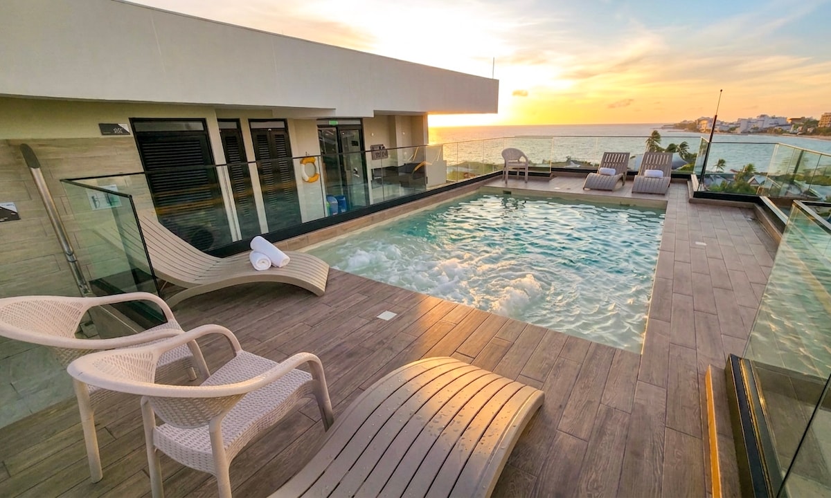 Penthouse in San Andrés mit Meerblick und privatem Whirlpool. Erlebe die Insel vom höchsten Punkt aus. Genieße eine geräumige, coole und voll ausgestattete Unterkunft: Privater Whirlpool mit Blick auf den Ozean Komfortable Zimmer mit Klimaanlage Ausgestattete Küche WLAN und TV Schritte zum Strand Ideal zum Entspannen, Abschalten und für unvergessliche Momente. Verfügbar für Buchungen