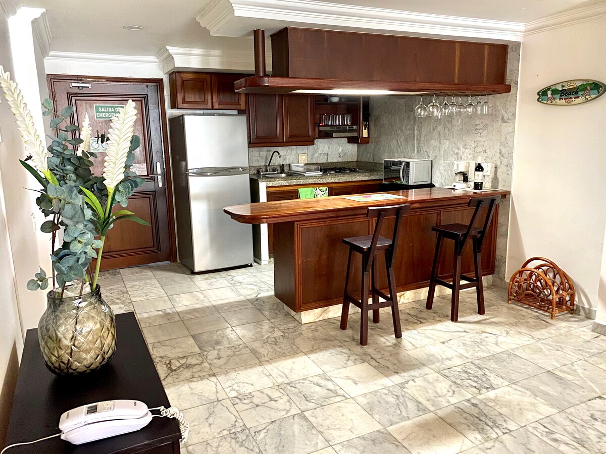 Schöne Wohnung im Sunrise Beach Hotel im 5. Stock. Mit Blick auf das Karibische Meer. 🐠 Unsere neu 🚽renovierten Badezimmer haben heißes Wasser 🚿 Das Hotel liegt 10 Gehminuten von der Fußgängerzone entfernt, wo Sie Restaurants, Geschäfte und den Hauptstrand genießen können. Sie können auch die Gemeinschaftsbereiche des Sunrise Hotels nutzen, wie z. B.: Schwimmbad🏊🏼♀️, Fitnessraum🏋🏼, Nassbereiche🧖🏽♀️ und Restaurants.