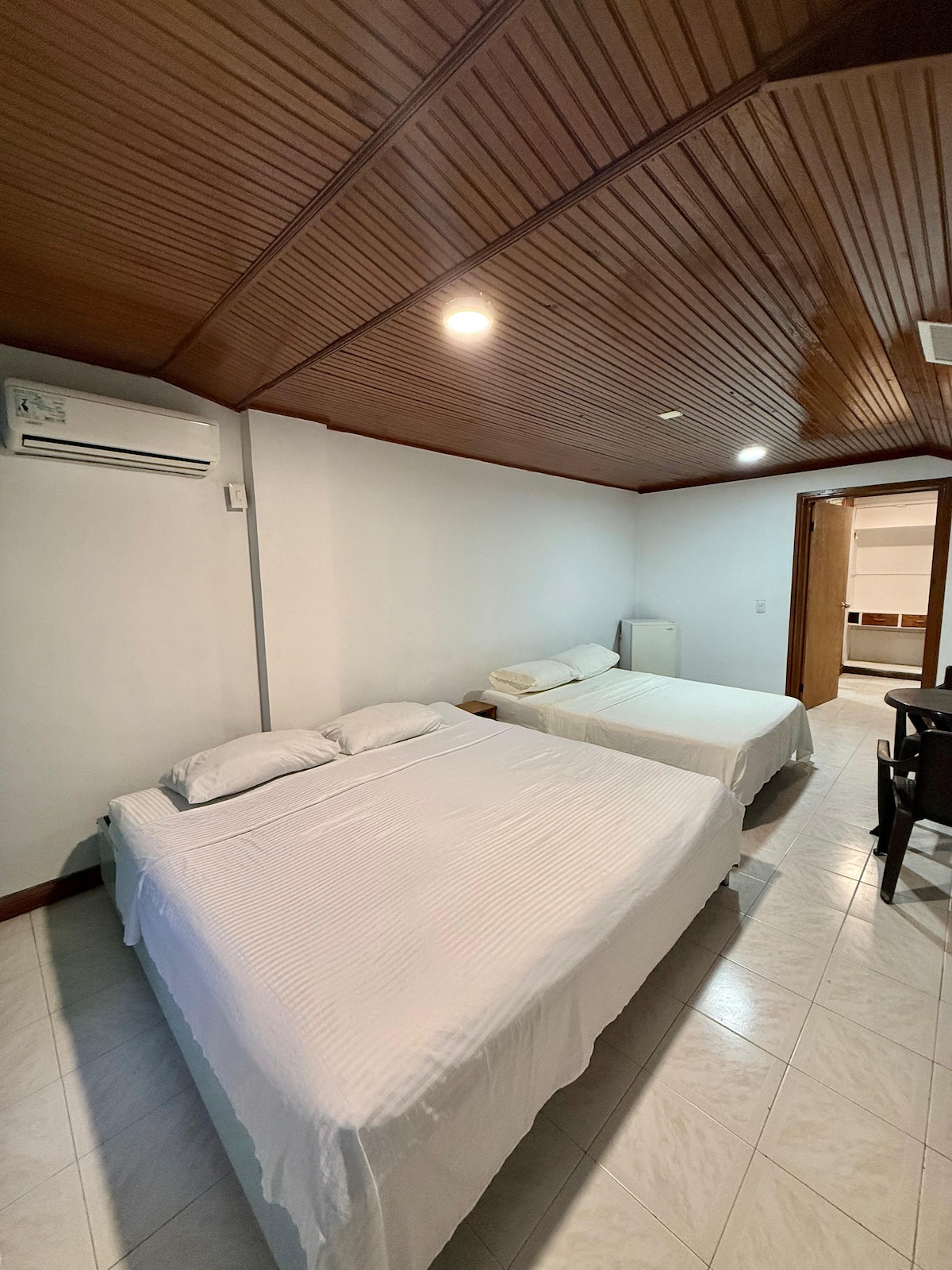 Studio-Wohnung, Schlafzimmer plus Küchenzimmer mit Badezimmer und Dusche, Kleiderschrank, Doppelbett, 4 Einzelbetten, 2 Einzelstühle, Klimaanlage, Kühlschrank, Herd, ausgestatteten Schränken, WLAN und Kabel-TV. Völlig unabhängig, befindet sich in einer städtischen Gegend an der Avenida 20 de Julio, nur wenige Blocks von der Innenstadt und dem Hauptstrand entfernt. In der Nähe findest du Supermärkte ,Restaurants und Fastfood.