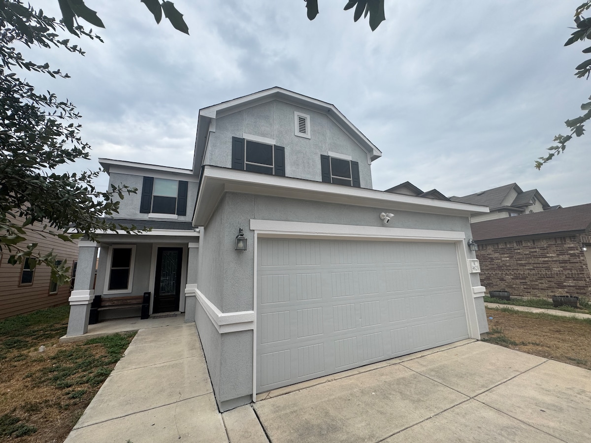 Dieses neu gebaute Ferienhaus ist nur wenige Minuten von allem entfernt, was du gesehen hast. Eingebettet in die Vororte; aber nah genug an den Nord-/Süd- und Ost-/West-Autobahnen, um alle Attraktionen nur wenige Minuten von deiner Haustür entfernt zu machen. Nur 7 Minuten zum Flughafen San Antonio. Unsere malerischen Fenster bringen die Außenseite direkt ins Wohnzimmer. Und unsere ferngesteuerten Rollos bieten absolute Privatsphäre.