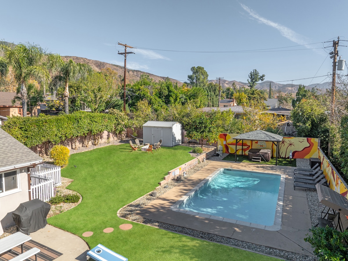 Willkommen in unserem sorgfältig sauberen Paradies mit drei Schlafzimmern und zwei Badezimmern in San Bernardino! Dieses wunderschöne Haus ist für Komfort und Unterhaltung ausgelegt. Entspanne dich im Spielzimmer mit einem Billardtisch oder versammle dich an der Feuerstelle der Terrasse. Erlebe den Charme unseres Außenbereichs mit einer zweiten Feuerstelle in der Rasenfläche. Schaffe bleibende Erinnerungen inmitten von frisch bemalten Wandgemälden in der Nähe des einladenden Pools und des brandneuen Whirlpools – perfekt für Sternenabende mit Freunden und Familie.