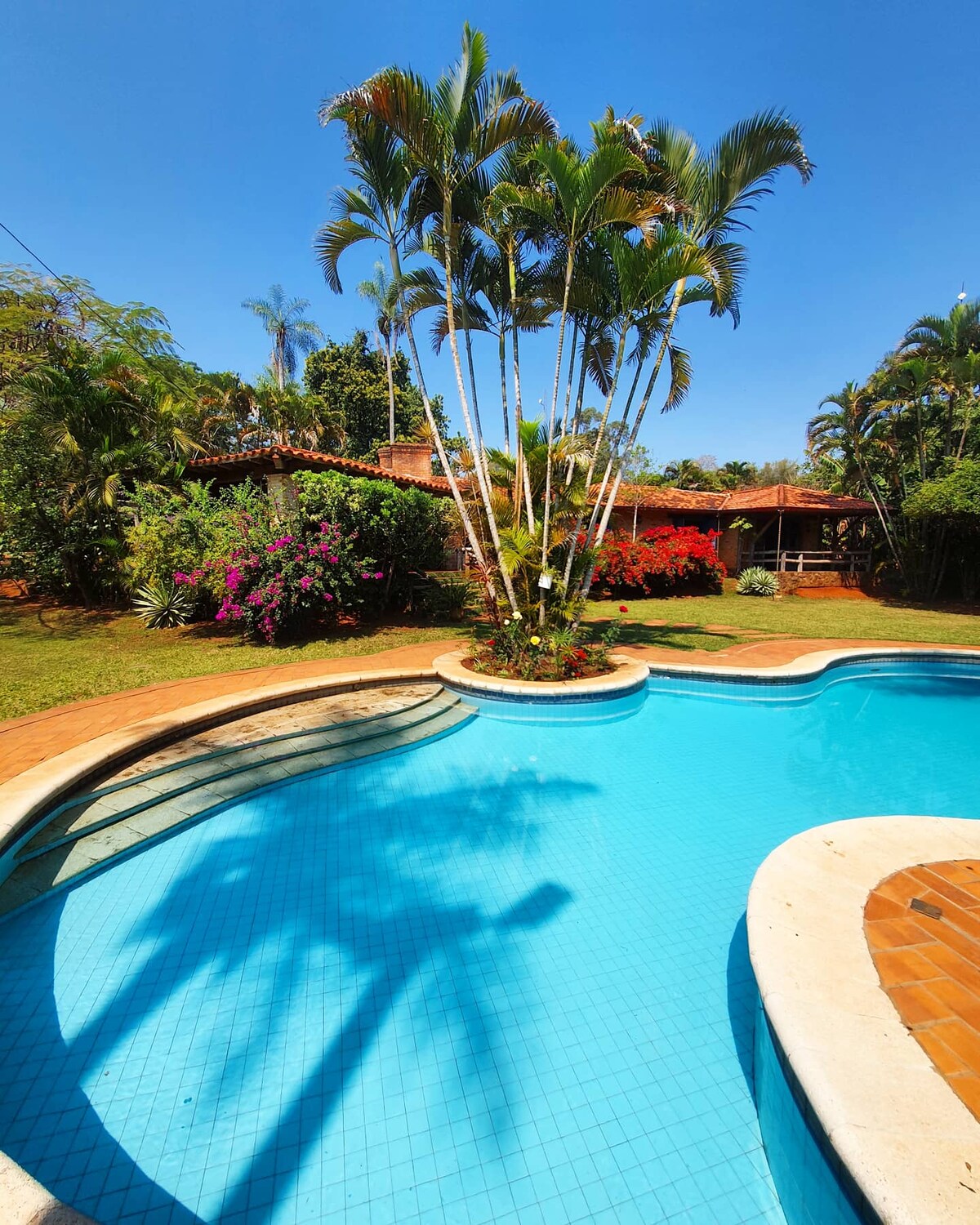 Hier kannst du in Ruhe entspannen oder auch eine rauschende Party feiern, ganz wie es dir beliebt! Mit allem Komfort, mitten in der Natur und dennoch nahe an San Bernardino und nur einen Katzensprung von Caacupé mit seiner Basilika entfernt. Genieße den freien Blick ins Tal auf Ypacaraí bis hin zur Skyline der Hauptstadt Asunción. Im Pool oder auf der Terrasse genießt du den Tag und anschließend den romantischen Sonnenuntergang. Oder doch lieber erstmal ein Glas Sekt im Indoor-Whirlpool?