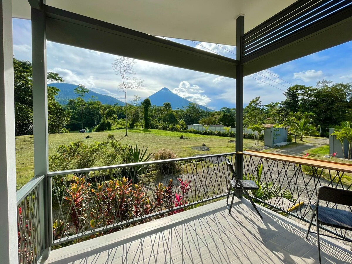 Arenal Home ist eine gemütliche und moderne Wohnung in La Fortuna, nur zwei Blocks von der Innenstadt entfernt, in einer ruhigen und sicheren Gegend. Genieße vom Balkon und sogar von deinem Bett aus einen beeindruckenden Blick auf den Vulkan Arenal. Die Wohnung verfügt über eine voll ausgestattete Küche, Klimaanlage, 100 MB Glasfaser-Internet, einen Arbeitsplatz, Kabel-TV, ein Queensize-Bett und ein Schlafsofa. Innerhalb von 5 Minuten zu Fuß finden Sie Restaurants, lokale Geschäfte, Apotheken, die Bushaltestelle und vieles mehr. Der ideale Ort zum Verweilen und Entspannen