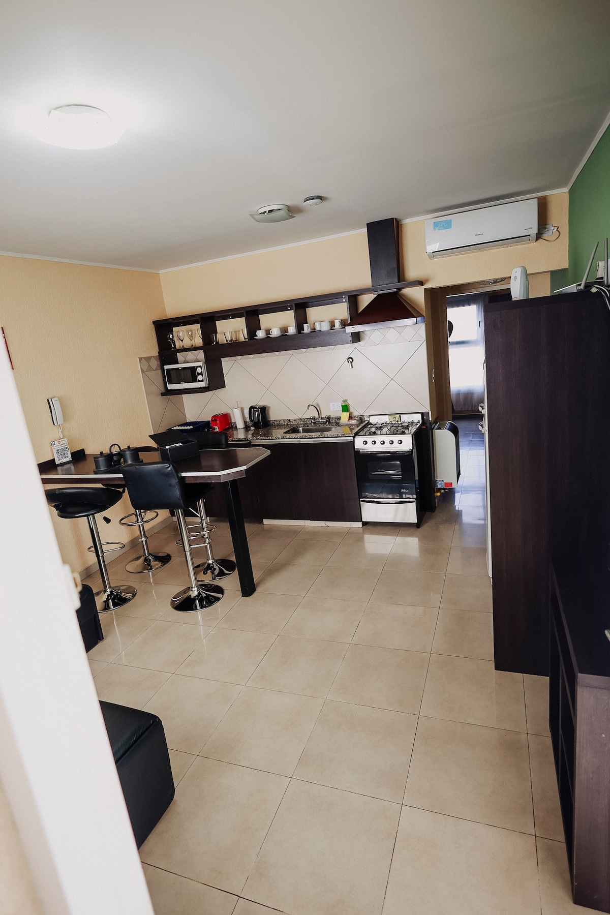 Esta totalmente equipado para 2 personas. Cuenta con cocina comedor, baño y 1 habitación con cama matrimonial. Balcón propio, cochera techada y churrasquera en espacio compartido. Cuenta con: vajilla, ropa de blanco, TV e internet. Está ubicado a 1 km del centro, 2 cuadras del casino principal de la ciudad, a 1 cuadra del hospital y a 8 cuadras de la zona de bares, restaurantes,