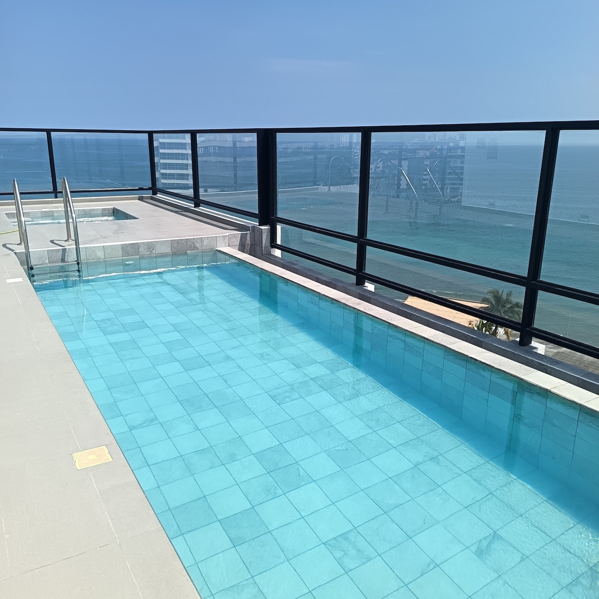 Este alojamiento elegante, cómodo y funcional es ideal para disfrutar junto a tu familia y amigos de días espectaculares junto al mar, además de las amenidades que te ofrece El Condominio Grand Bay! Piscina, jacuzzi, sauna, baño turko, gimnasio, rooftoop con una vista preciosa al mar y la ciudad. Cuenta con parqueo para 1 vehículo. Puedes disfrutar de las amenidades sin costo adicional. Y algo muy importante a destacar, es la seguridad que te ofrece desde el momento que ingresas!