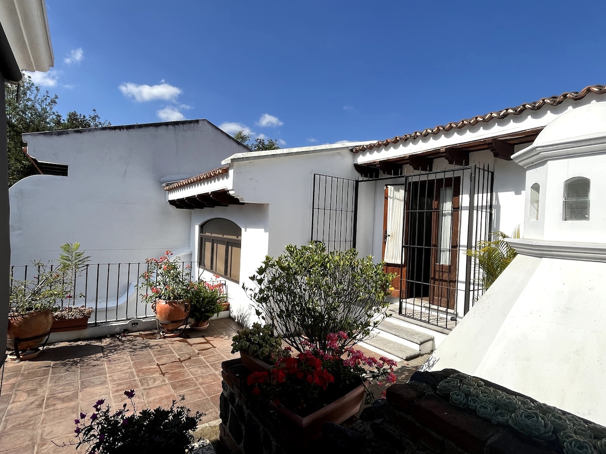 A Hidden Oasis 4 blocks from the Central Park. There's no place like this in Antigua. You may not want to leave! Sleeps 3. Fully equipped & comes with 1 secure parking space & very large TV screen. Best WiFi in Antigua. You'll be living in a lush & expansive garden with a view of the Volcano Agua that can't be beat. 7 other Casitas share this beautiful setting..