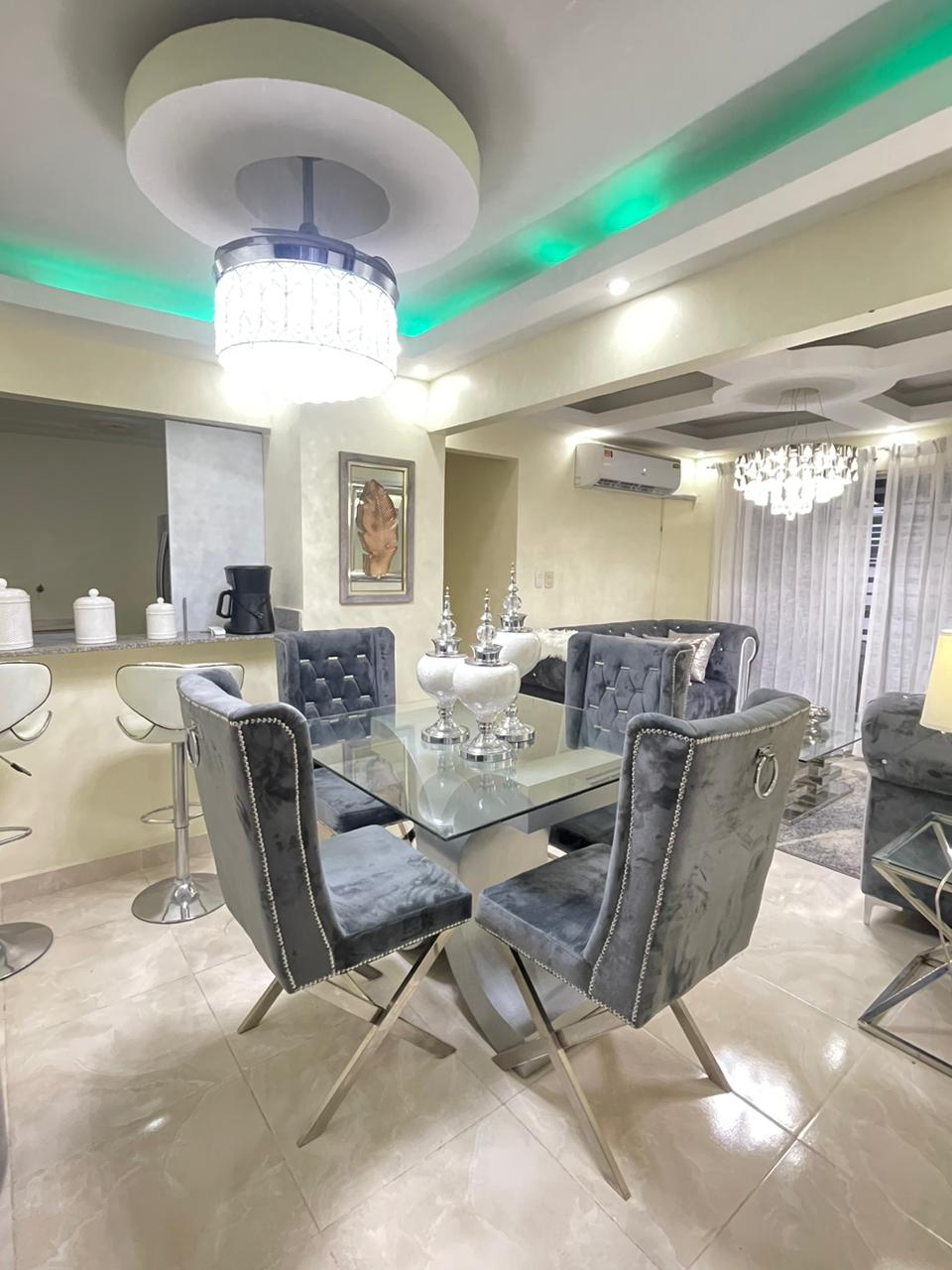 Enjoy this modern, fully equipped penthouse located in a safe, central area, just 5 minutes from Playa Los Almendros and the center of Peravia (Baní). The apartment features 3 bedrooms, 4 bathrooms, air conditioning, spacious closets, parking for 2 vehicles, and amenities including a gym, children’s play area, and event space on the 5th floor. Billiard table is for adults only. Optional services: vehicle rental and airport transfers. No elevator.