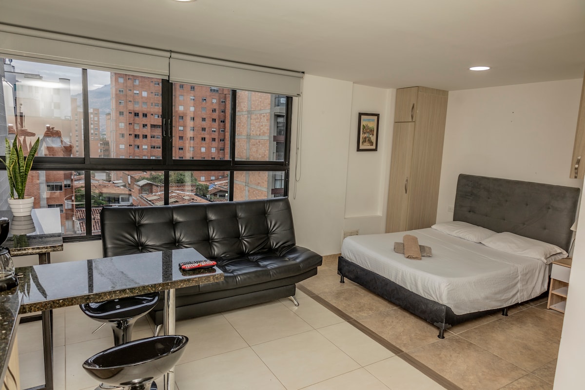🛎️ Pay 0% service fee on Airbnb! 🛎️ ✨ Exclusive benefit for our guests ✨ Stay in a modern studio on the 21th floor with stunning panoramic views of Medellín. Fully furnished and equipped, perfect for both short and extended stays.🌆 Located in a safe residential area with 24/7 front desk, surrounded by shops and residences. Just steps from restaurants, supermarkets, the tram, and only minutes from the metro, with taxis and buses right at your doorstep for easy city access.