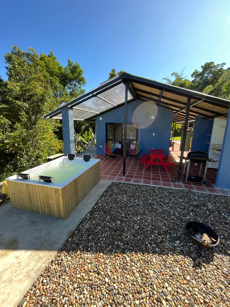 Entspanne dich und genieße die Natur in einer schönen Familienhütte auf dem Gipfel des Berges. Privilegierte Aussicht auf die Bergkette, ökologische Aktivitäten wie Wandern, Vogel- und Kolibrisbeobachtung, Spaziergang zum Fluss, Radfahren in den Bergen, Reiten und vieles mehr. Ökologischer Gemüsegarten und Avocadoanbau, damit du das Landleben kennenlernen und genießen kannst. Du kannst auch arbeiten, während du dieses Paradies genießt, und den Tag mit einer entspannenden Sauna-Session abschließen, die exklusiv für unsere Gäste ist.