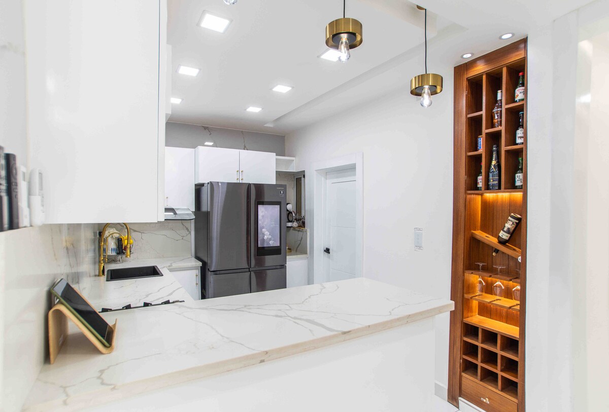 Entspannen Sie sich in diesem ruhigen und eleganten Raum, der perfekte Ort für Sie, 5 Minuten vom echten Nachtleben entfernt, 2 Parkplätze, Alexa-System, Netflix, Kalt- und Warmwasser (zentrale Luft im Hauptschlafzimmer, Luxus-Wohnzimmer, Fernsehzimmer, Esszimmer und Küche kalt) verfügt auch über 2 Küchen kalt oder wenig genutzt und heiß, großer Balkon und 24-Stunden-Sicherheit.
