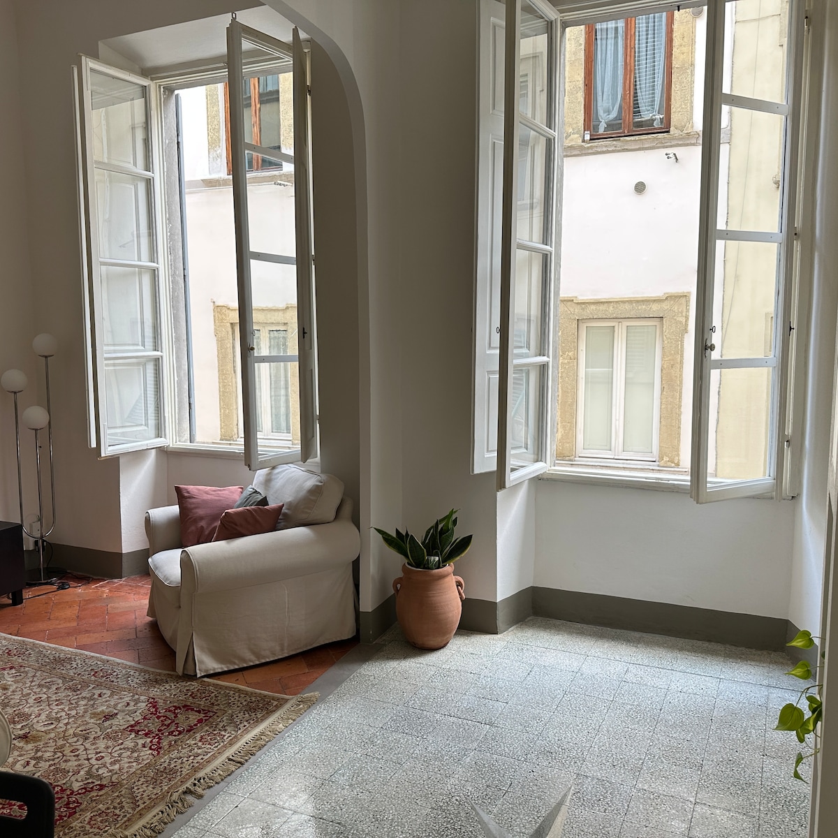 Ein heller Rückzugsort mit einer unverkennbar italienischen Atmosphäre. Im Herzen des Oltrarno, in der Nähe von Santo Spirito, verbindet dieses Haus Komfort und natürliches Licht in einem typischen Gebäude des historischen Zentrums von Florenz. Die private Terrasse mit meinem Zitronenbaumkunstwerk öffnet sich zu ruhigen Innenhöfen. Ein frisch renoviertes Schlafzimmer mit kürzlich erneuerten Fenstern und Möbeln, zusammen mit einem renovierten Badezimmer und einer voll ausgestatteten Küche, schaffen einen warmen, kuratierten und authentisch lokalen Aufenthalt – in der Nähe von Cafés, Ateliers.