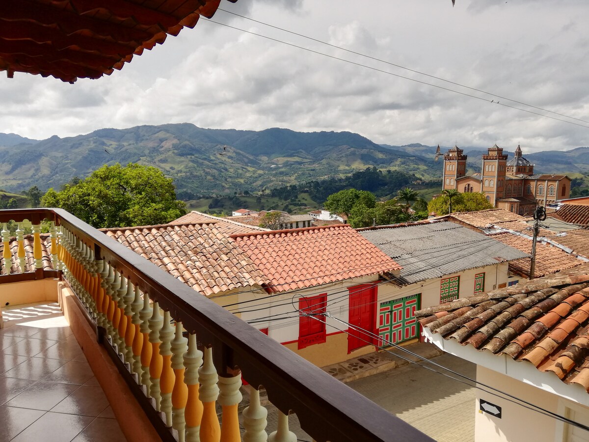 🌄✨ Entspannen Sie sich in dieser Hütte, umgeben von Bergen🌳, mit herrlichem Blick auf die Bergkette 🏔️ und das Dorf Jardín 🌸. Mit einem Kingsize-Bett🛏️, einem privaten Badezimmer🚿, einer Küchenzeile 🍴 und einer Terrasse mit Whirlpool🛁 ist es perfekt für romantische Momente💕. 🥐☕ Frühstück inklusive, 🍽️ im Haupthaus. 🌱 Darüber hinaus können Sie eine personalisierte Tour durch unsere Margus Farm genießen, mit einem Sonderpreis für Gäste, wo Sie die Geheimnisse des Kaffees entdecken werden ☕. Erlebe ein unvergessliches Erlebnis! 🌈
