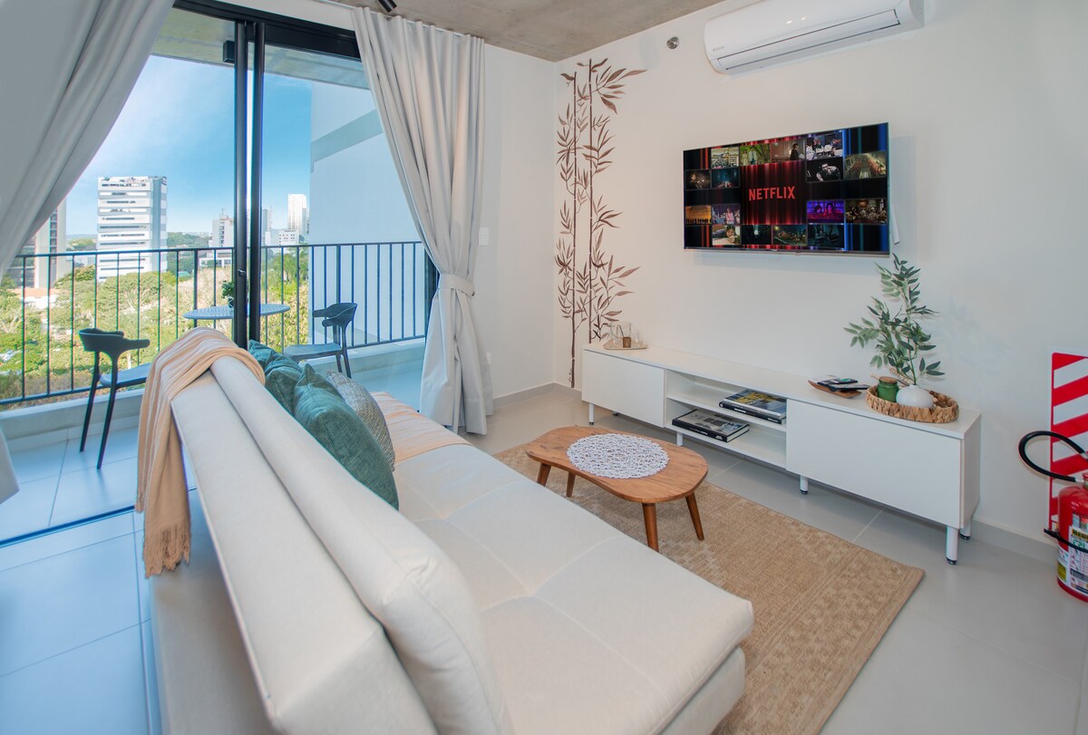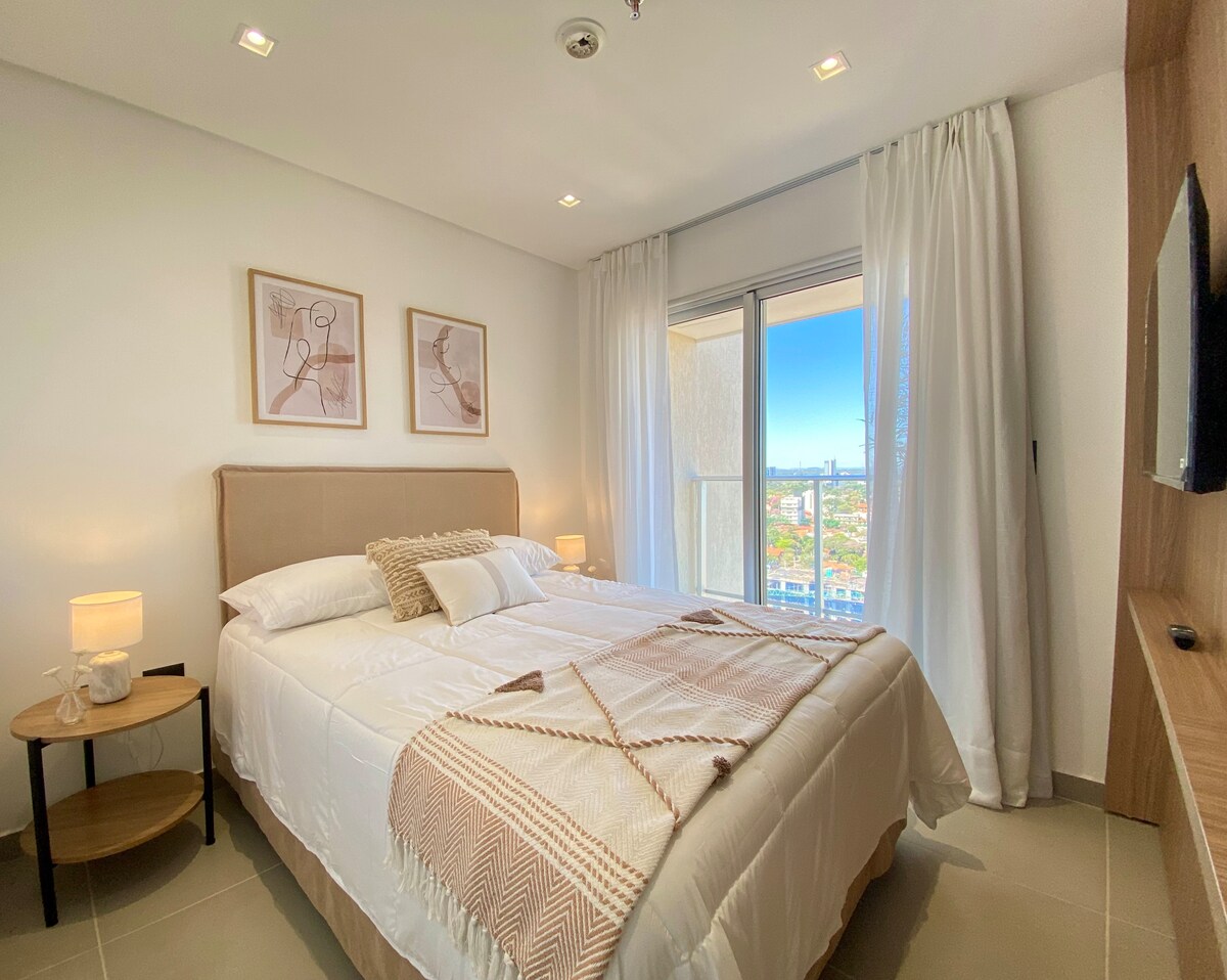 Departamento moderno, súper equipado, con balcón, parrilla, vista panorámica desde el piso 24 y excelentes servicios: - Piscina - Coworking - Quincho - Cine - Estacionamiento por autoelevador (auto pequeño/mediano) - Seguridad 24/7 Gran ubicación: - A 5 minutos del Eje Corporativo, el Shopping del Sol y el Paseo La Galería. - A 10 minutos de la Costanera y el Puente Héroes del Chaco. - A 15 minutos del Aeropuerto Internacional Silvio Pettirossi. Incluye Wi-Fi · Smart TV · Colchones premium