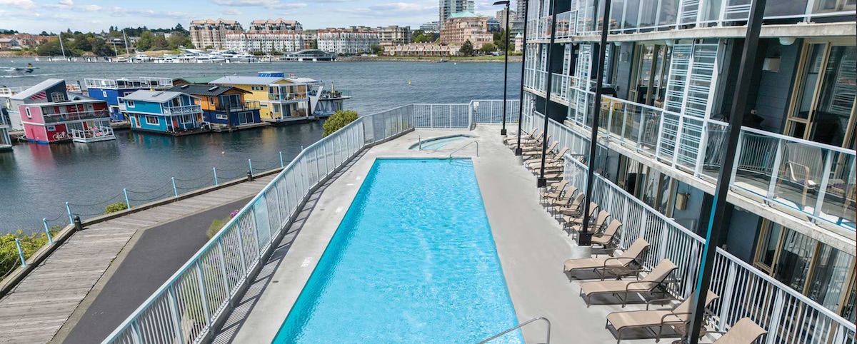 Located in one of the most amazing areas in Victoria, Gorge. The waterfront suite features 2 big bedrooms, 1 bathroom, 1 kitchen and living room spread on first level in a quiet family and friendly neighbourhood. Wonderful sea view with private dock gives you everything you need to rest, enjoy and rejuvenate away from home. Features back yard with spacial terrace. If you love Kayaking or canoe, it could be an activity. 5 minutes away, you swim in Pacific paradise. Max 6 pers means family/kids.