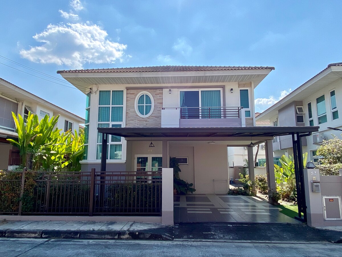 🏡 Willkommen bei per • CHance | Gemütliches und sicheres Ferienhaus Unsere Unterkunft befindet sich in einem ruhigen und bewachten Hausgrundstück in Chiang Mai mit 24-Stunden-Sicherheit, die Ihnen Ruhe und Gelassenheit gibt. 🏠 Das Haus verfügt über 4 Schlafzimmer, jedes Zimmer bietet Platz für 2 Personen und bietet Platz für bis zu 8 Gäste.Wir werden die entsprechenden Zimmer basierend auf der tatsächlichen Anzahl der Gäste öffnen, und die restlichen Zimmer werden verschlossen, um Energie zu sparen und das Waschen der Bettwäsche zu reduzieren, als Reaktion auf den Umweltschutz. Geräumig und gut ausgestattet: • Highspeed-WLAN, 4K-Smart-TV • Klimaanlage im ganzen Haus, voll ausgestattete Küche und Geschirr • Drei Badezimmer, Handtücher, Toilettenartikel • Das Zimmer im Erdgeschoss ist für ältere Menschen geeignet • Kostenlose Parkplätze, Haartrockner Das ganze Haus wird gereinigt und die Bettwäsche wird vor dem Check-in gewechselt, um einen privaten Raum für lange und kurze Aufenthalte zu bieten. 💡 Strom- und Wassergebühren werden nach tatsächlichem Verbrauch berechnet. Der Zähler wird am Check-in- und Check-out-Datum abgelesen. Die Rechnung ist transparent. Bitte erkundige dich im Voraus. 📌 Hausordnung: 1. Bitte zieh deine Schuhe drinnen aus 2. Bitte schalte die Klimaanlage und das Licht aus, wenn du ausgehst. 3. Bitte reinigen Sie Küchenutensilien nach Gebrauch 4. Rauchen verboten 5. Bei verlorenen Schlüsseln wird eine Gebühr von 300 THB erhoben 6. Möbelschäden müssen entsprechend dem Preis ersetzt werden.