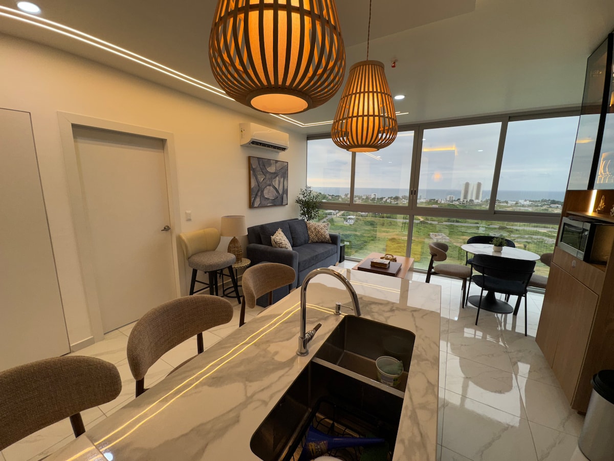 Disfruta de una experiencia única en este moderno departamento con una impresionante vista al mar diseñado para ofrecerte comodidad y lujo en cada detalle, te hará sentir como en casa. El departamento está equipado con una cocina funcional y moderna, camas ultra cómodas y una decoración impecable que combina elegancia y confort. Aquí, cada rincón ha sido pensado para brindarte una experiencia inolvidable. Disfruta de una área social espectacular, contarás con gimnasio para tu rutina diaria.