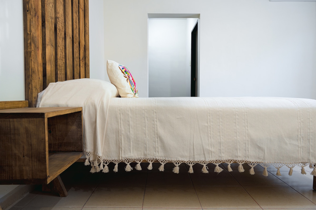 Orquidea: Habitación Premium (2 - 3 personas max) - Cama King Size - Cama individual - Baño completo - Cocineta Amenidades Compartidas - Alberca - Camastros - Mesa exterior con sombrilla - Palapa con asador - Estufa - Refrigerador - Licuadora - Asador