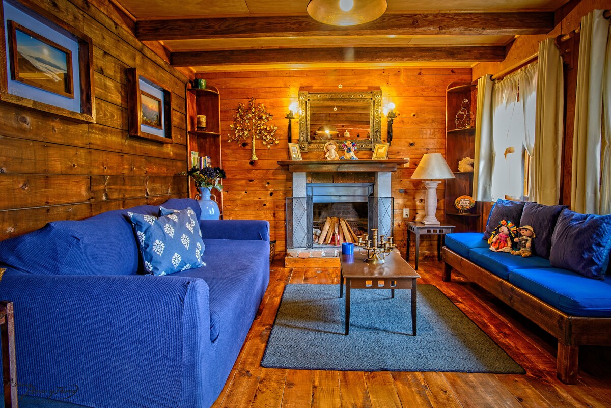 cabaña azul con chimenea cerca de real de 14