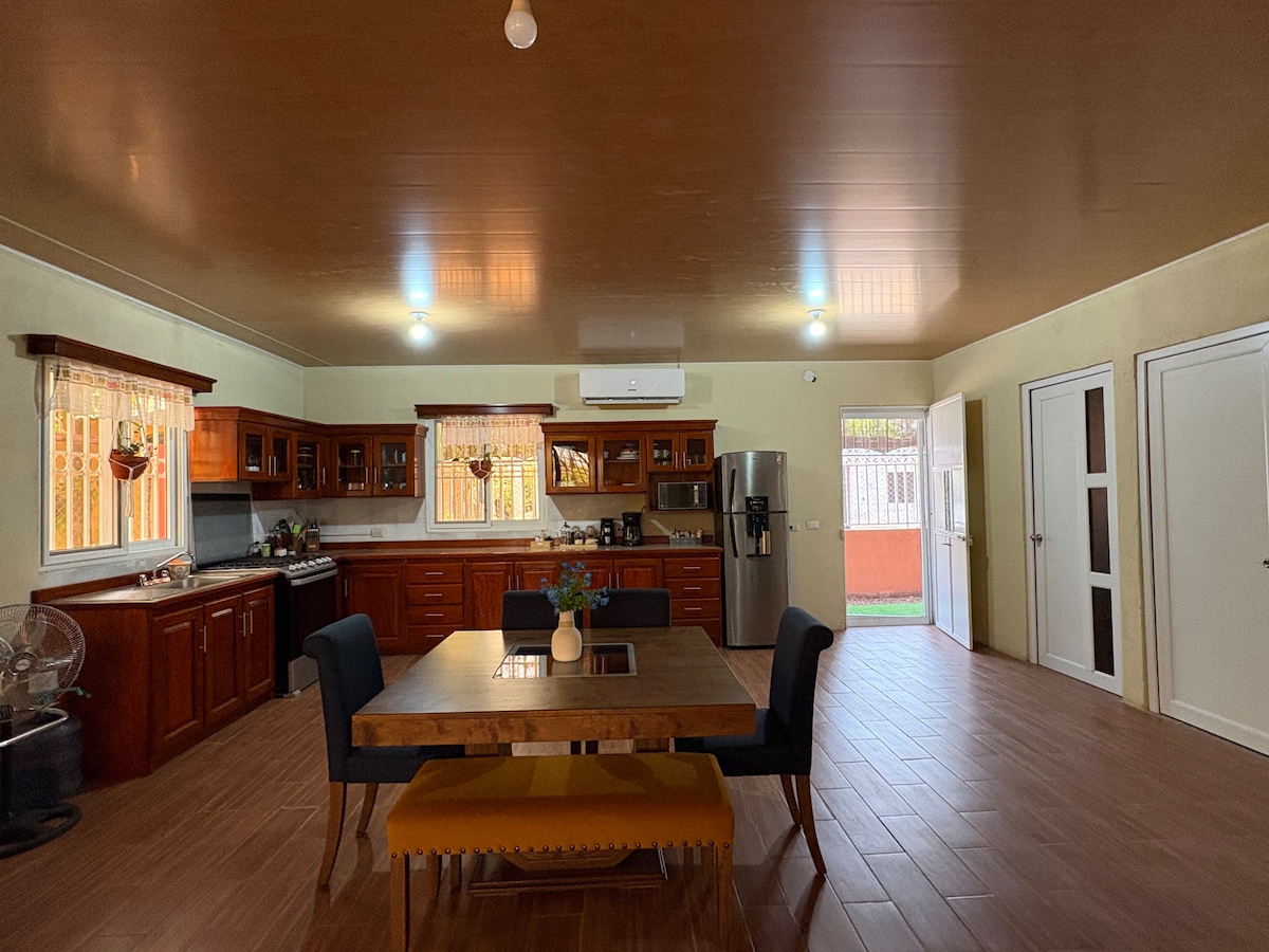 Beautiful House 100% SMART! for up to 12 people, ONLY 4 minutes from IRTRA. Private Pool & Jacuzzi/no hot water. 3 Bedrooms with AC, 3 Bath. Garage and Outside parking for up to 8 cars. Peaceful and quiet. 24/7 Security Private Condominium Las Fuentes. Relax in a large backyard with outdoor kitchen equipped w/ Santa Maria Grill, Pizza Oven, wood burning stove, Weber Kettle, smart sound system, Private Pool and Jacuzzi. Netflix, Spotify, Amazon Music/Video, XM Radio
