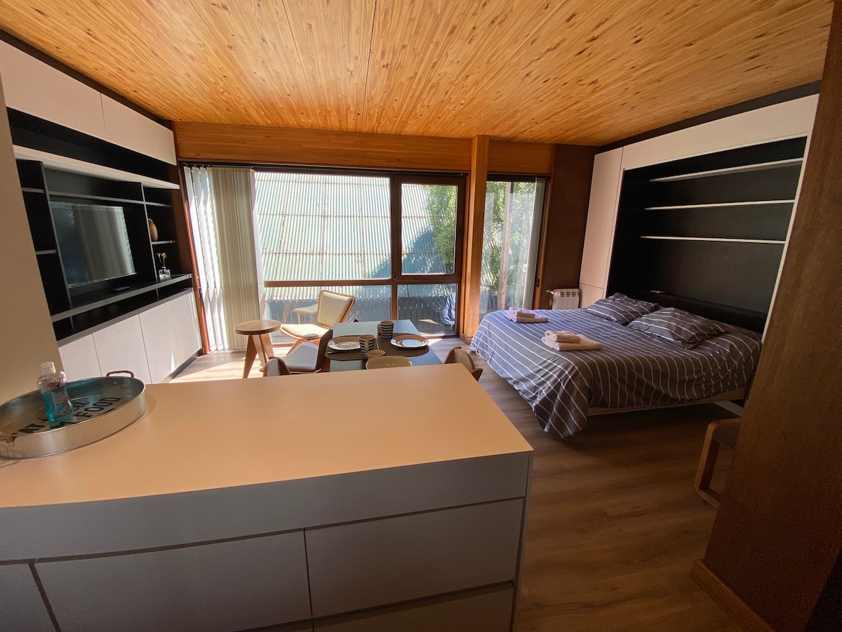 Schönes Studio von 40m2, kürzlich eröffnet, sehr hell und modern, mit schöner Aussicht von seinem Balkon im ersten Stock. Es verfügt über eine warme und komfortable Umgebung und ist mit 1 Queensize-Bett und 1 Einzelbett von ausgezeichneter Qualität ausgestattet; super ausgestattete Küche mit Frühstücksbar und komplettem Bad. Es verfügt über Smart-TV mit Kabel und WLAN. Das Hotel liegt im Zentrum, 3 Blocks von der Hauptstraße, 8 vom See und nur wenige Schritte von Geschäften wie Restaurants, Rotisserien und Supermärkten entfernt. Eine Traumwohnung.