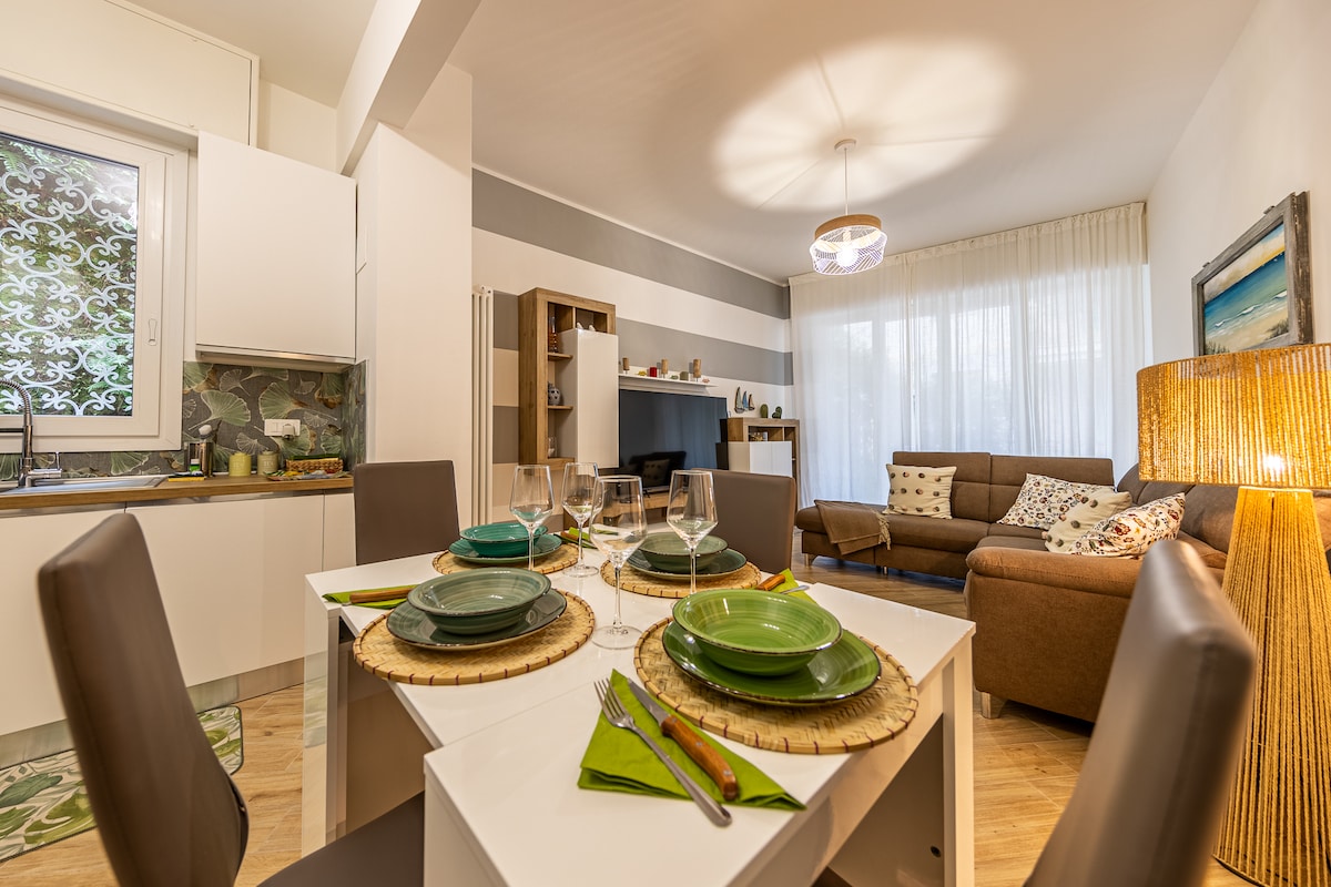 Geräumiges, renoviertes Haus mit 3 Schlafzimmern und 2 Badezimmern in einer großen Mid-Century-Villa mit OFFENEM GRUNDRISS. Ruhig, privat, aber in der Nähe von allem. Viel Platz, drinnen & draußen. 2 Eingänge , verschiedene Schlafmöglichkeiten, (1 Schlafzimmer mit Küchenzeile) ein ideales Zuhause für Familien, Gruppen. Atemberaubender Meerblick, private überdachte Terrasse. 5-10 Minuten zum Strand, zu Geschäften, Restaurants, Zug. KOSTENLOSER Parkplatz vor Ort für ein Auto oder KOSTENLOSES Taxi für die Ankunft, VIELE Annehmlichkeiten. CODICE CITRA 011019-LT-0532 CIN IT011019C2LNIN89GG