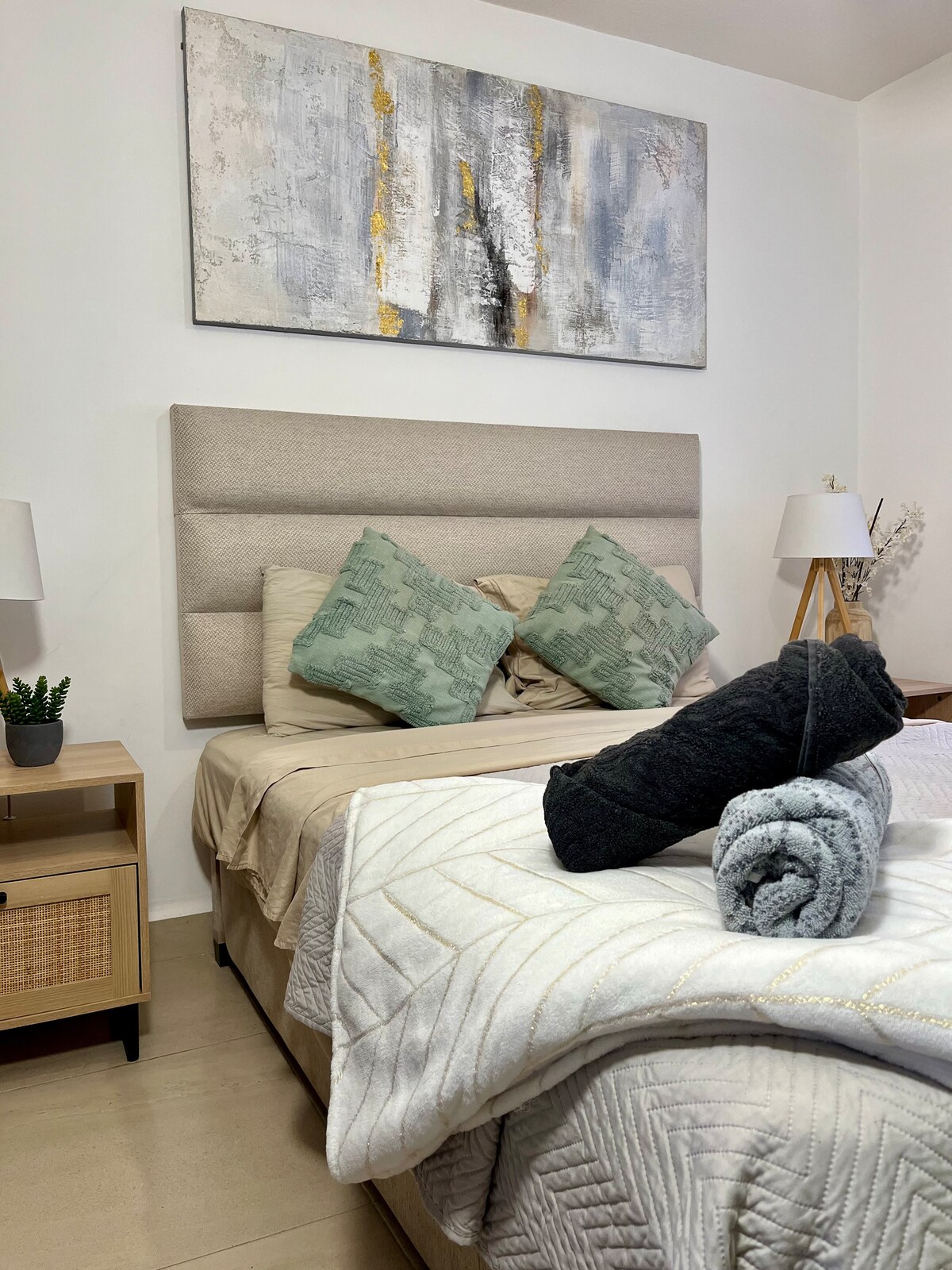 Neu & wunderschönes Apartment im La Luminaria Residences. Ideal für vier Personen. Diese Wohnung hat alles, was man für einen perfekten Aufenthalt braucht. Die Dachterrasse ist völlig privat und verfügt über einen Holzkohlegrill, wo du Platz und Aussicht vom Terrassendach genießen kannst. Parkplatz Elektronisches Türschloss (schlüssellos) Sicherheit rund um die Uhr Küche voll ausgestattet Smart-TV mit Netflix inklusive Schnelles Internet/WLAN (Glasfaser)