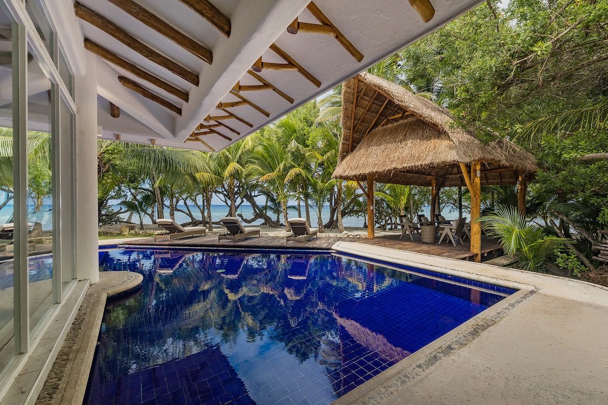 Entdecke deinen Traumurlaub am Strand, ein Paradies mit 5 Schlafzimmern am ruhigen Norden der Insel. Genieße privates Schnorcheln, Essen im Freien mit Meeresbrise und geräumige Wohnbereiche, die sich perfekt für Filmabende eignen. Zu den Merkmalen gehören eine Gourmetküche, eine Gasfeuerstelle, Sonnenterrassen, ein Privatstrand mit Hängematten und ein Hauptschlafzimmerbalkon mit atemberaubender Aussicht. Überdachte Parkplätze, eine sichere Fahrt und eine gute Anbindung an die Stadt machen diesen Rückzugsort ideal für jede Gruppe