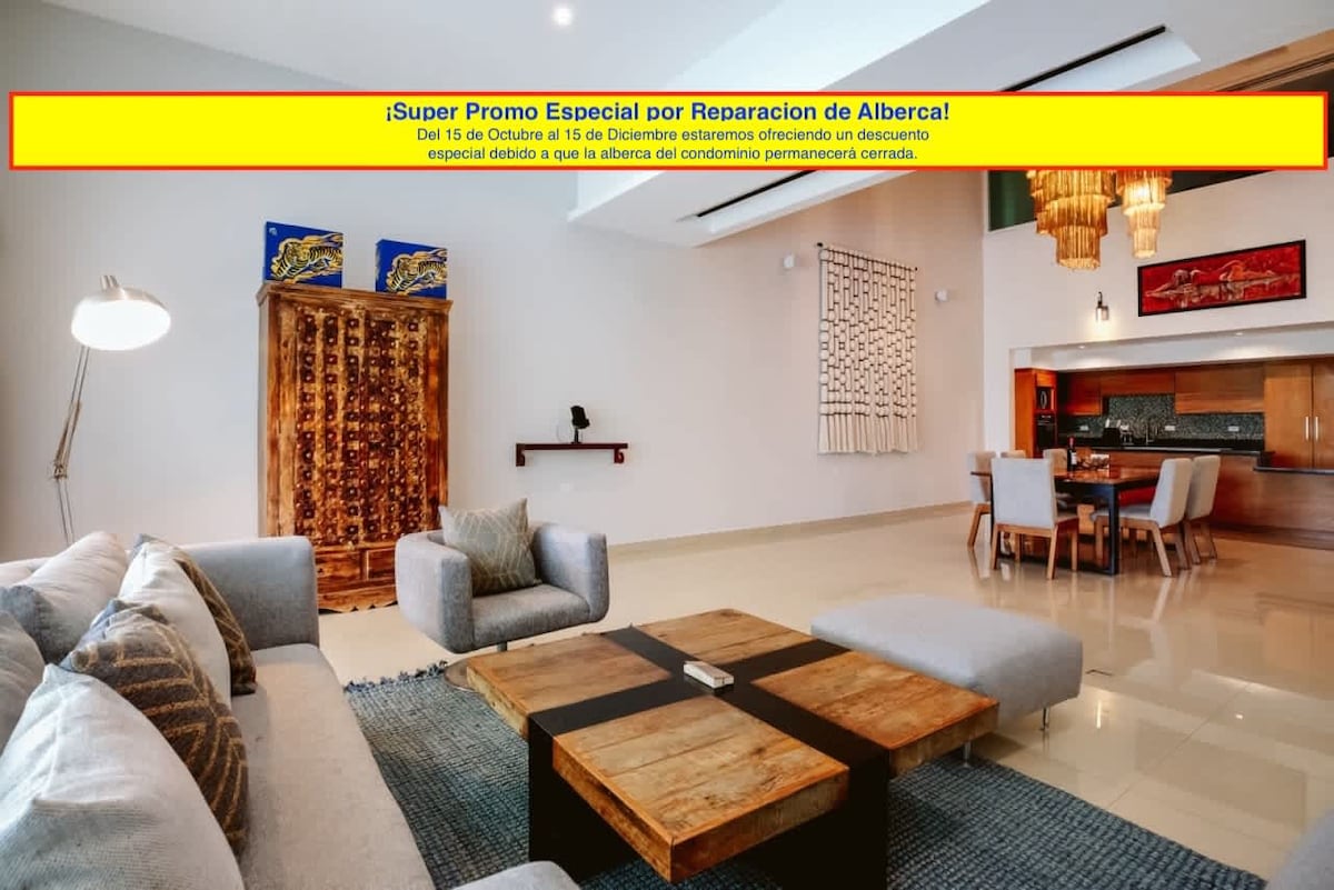Diese wunderschöne 3-Zimmer-Wohnung im 9. Stock des Peninsula Grand ist mit maßgefertigten lokalen Möbeln und einer sorgfältig zusammengestellten Auswahl an stilvollem, modernem mexikanischem Dekor ausgestattet. Luxuriöse Möbel und eine saubere, entspannende Atmosphäre werden dir helfen, dein ZEN zu finden, während du den atemberaubenden Meerblick genießt.