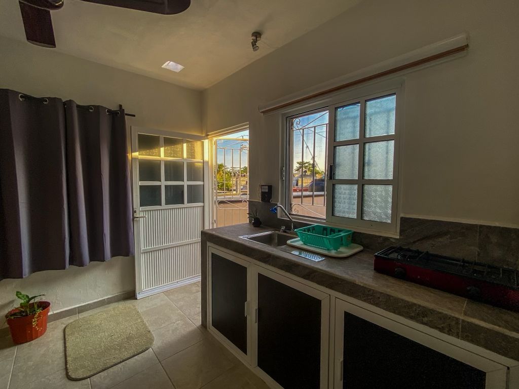 Gemütliches Hinterhaus mit 2 Schlafzimmern, 1 Badezimmer, Küche und einer geräumigen Terrasse. Vollständig möbliert und ausgestattet mit Klimaanlage in jedem Schlafzimmer, Herd, Mikrowelle, Kabel-TV mit Netflix und Warmwasser. Das Hotel liegt in der Innenstadt von Cozumel, nur 3 Blöcke von der Fähranlegestelle entfernt. Genieße schnelles Glasfaser-WLAN, perfekt, wenn du während deines Urlaubs arbeiten musst. Dieses Hinterhaus hat einen eigenen Eingang. Du hast auch Zugang zu einem erfrischenden Pool, der sich perfekt zum Entspannen nach einem Tag auf der Insel eignet.