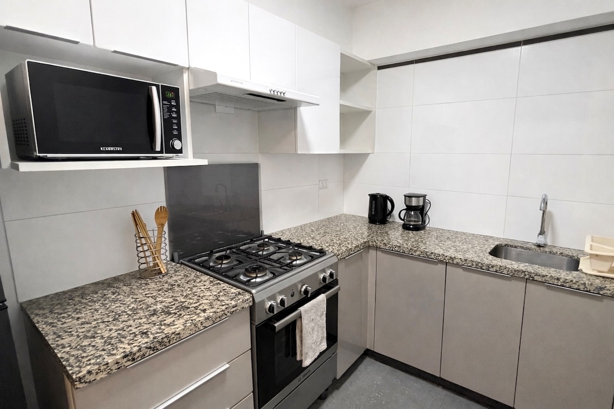 Modern fully furnished apartment, ideal for long stays. Features high-speed Wi-Fi, a 65” Smart TV with Netflix and Disney+, a fully equipped kitchen with espresso machine and water filter, washer-dryer, Double bed, and a balcony. The building offers a swimming pool, gym, and coworking area. 24/7 self check-in, smartkey, free parking, and 24-hour security. Strategically located in San Miguel, close to universities and shopping centers, and less than 20 minutes from the airport.